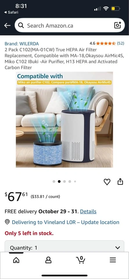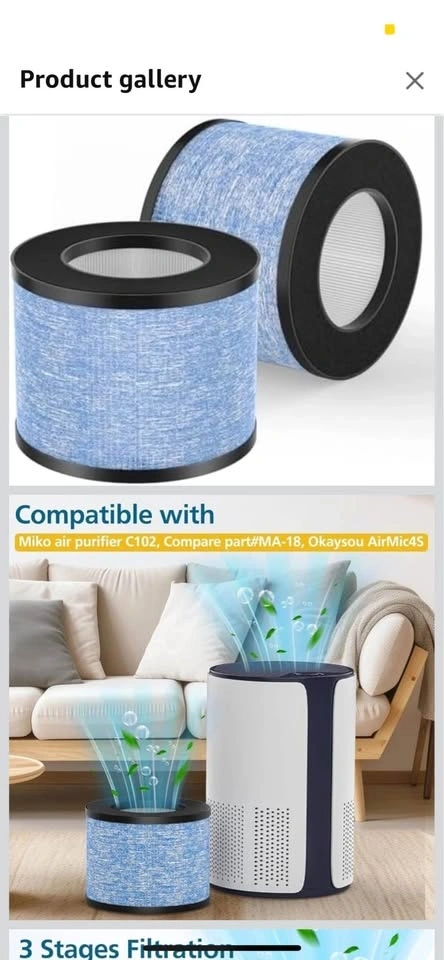 This is a 3-in-1 filter replacement: Nylon Pre-Filter + True H13 HEPA Filter + High-Efficiency Activated Carbon Filter. It's designed for MIKO air purifiers (C102, MA-01CW, ibuki S, MA-18) and Okaysou AirMic4S. It cleans at least 99.97% of airborne particles like smoke, pet dander, and dust. The activated carbon filter helps with household odors from smoking, pets, and cooking. For best performance, replace every 6-8 months. Easy to install, no tools needed.