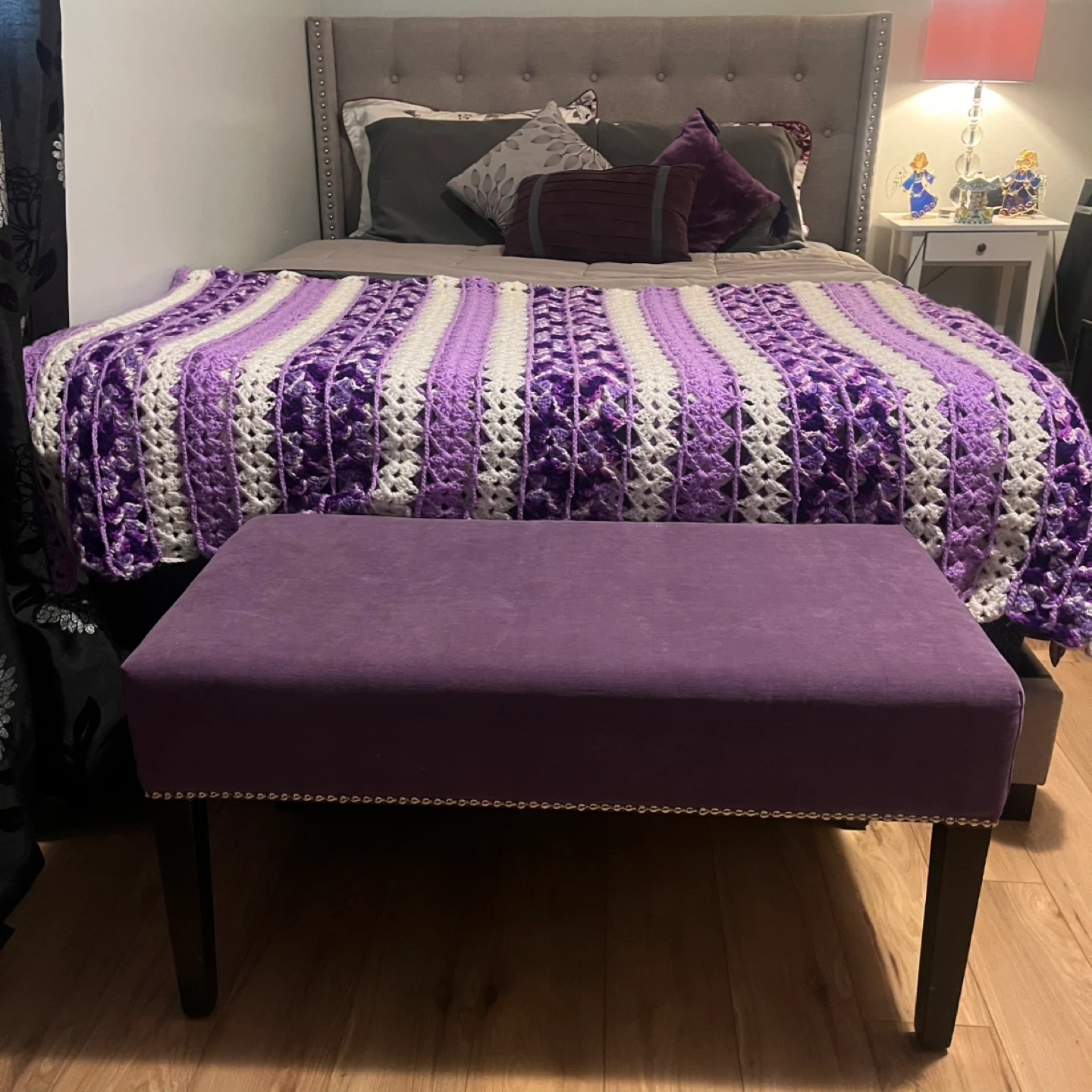Matching purple crochet bed spread (Large) is on sale if you want it $25