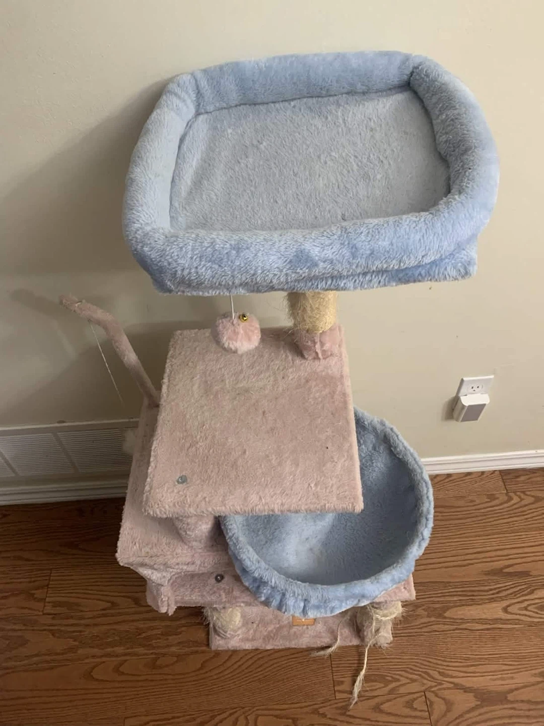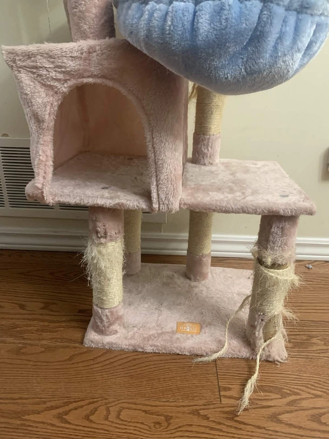 This 5-floor big cat tree is the perfect playground for your cat. It is made with strong, high-quality materials, including natural jute rope, so it will last a long time. With five levels of platforms and perches, your cat has a lot of space to play, exercise, and relax. A cozy cat room gives your cat a private spot to nap. Toy will keep your cat entertained for hours. The high levels help your cat feel confident and less anxious. Its sleek design also makes it easy to fit into your home.