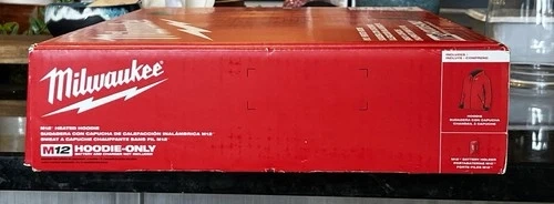 Milwaukee M12 Heated Hoodie. Powered by M12 REDLITHIUM Battery Technology. Features advanced carbon fiber heating elements for chest and back. One-touch LED controller with three heat settings. Quick-Heat function heats up 3X faster. Hidden battery pass-thru pocket for front or back placement. Durable cotton/polyester fleece with jersey lining for comfortable, versatile three-season wear. Hoodie only. Battery & Charger not included.