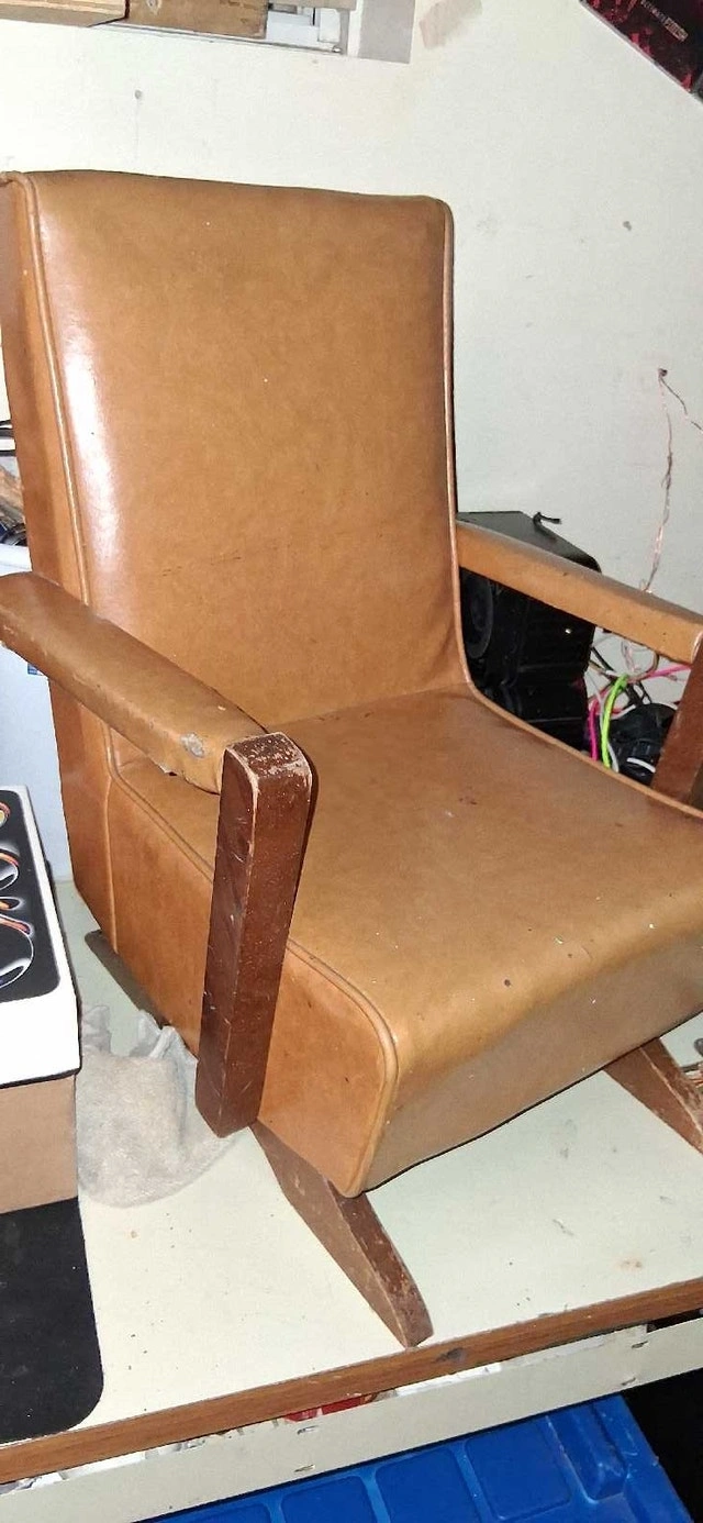 Super cute true mid-century children's rocker with vinyl upholstery and wood base. Very retro looking! Love the colors! Made by the Toledo Woodworks Company, Toledo, Ohio. Rocking chair is in overall good condition for its age. Asking $200 obo. Cash accepted.