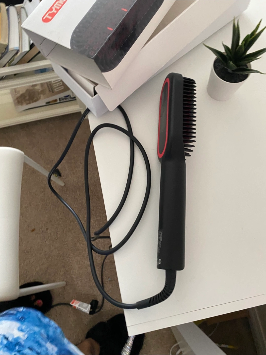 Selling a TYMO Ionic Plus hair straightening brush. It's in great condition and comes with the original box. This brush is designed to straighten hair quickly and efficiently, leaving it smooth and shiny. If you're looking for an easy way to style your hair, this could be perfect for you!