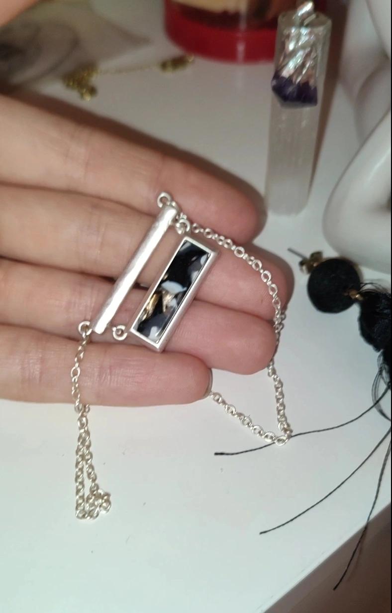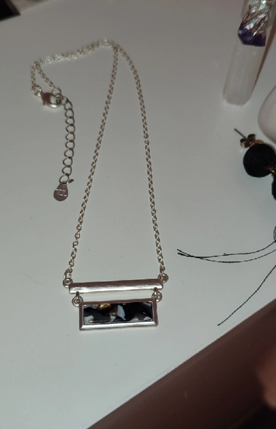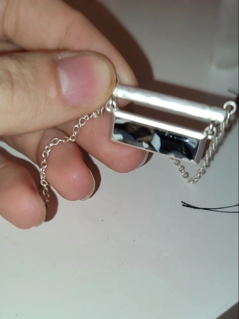 Silver Tone Necklace with Black & White pendant