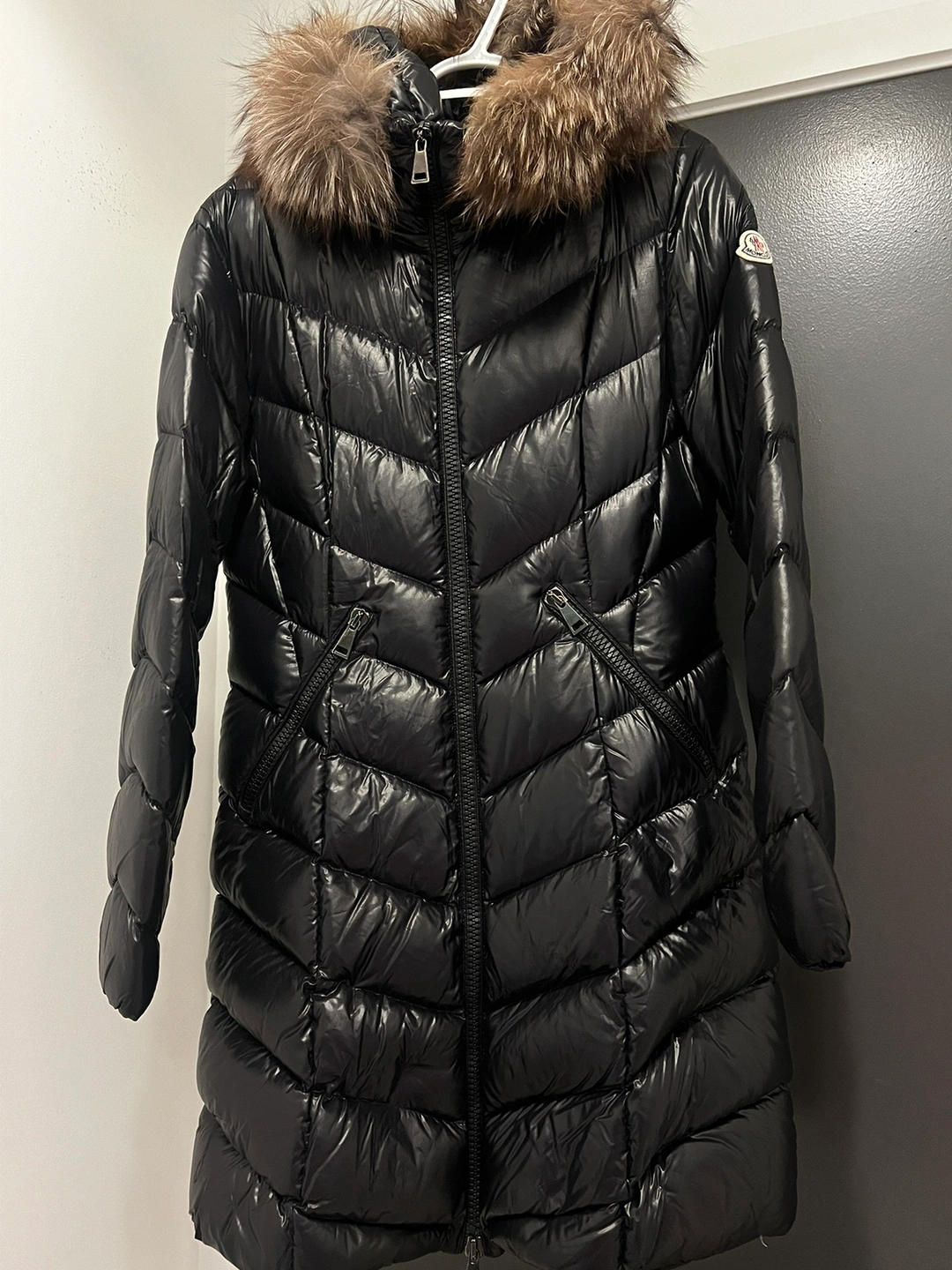 Beautiful black Moncler coat I’ve had this coat about 2 years now absolutely love it very warm still has original fur - most monclers now come with faux fur now- zipper and down feathers still intake and brand new