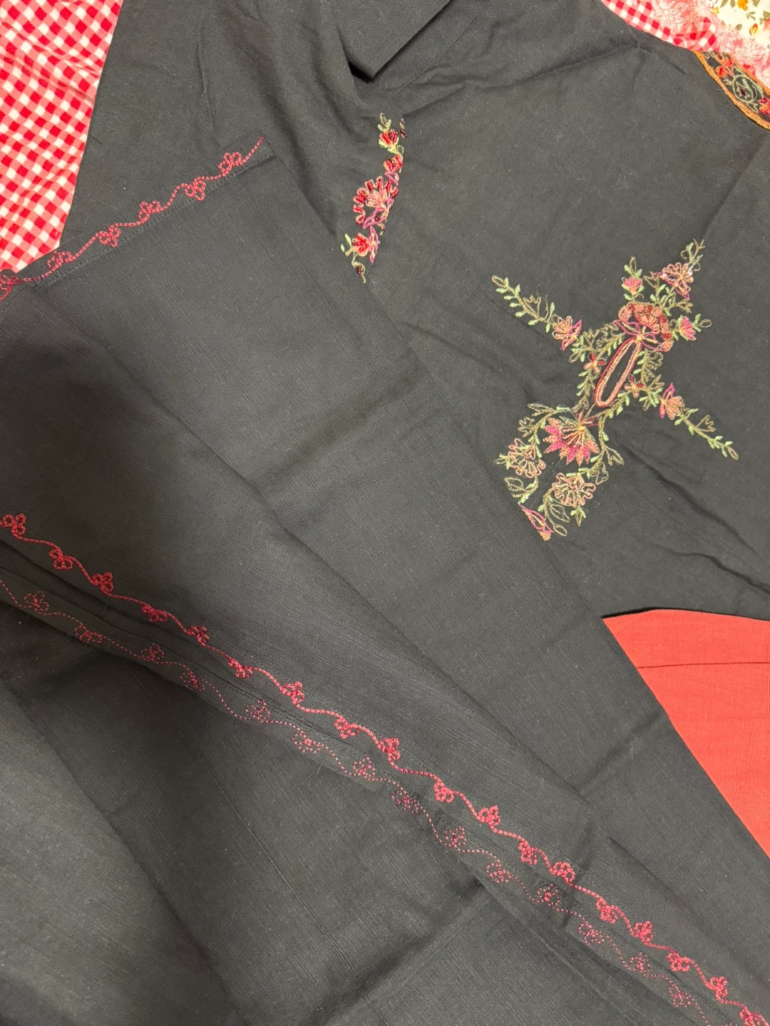 Black Kurti with Floral Embroidery dupatta and pant