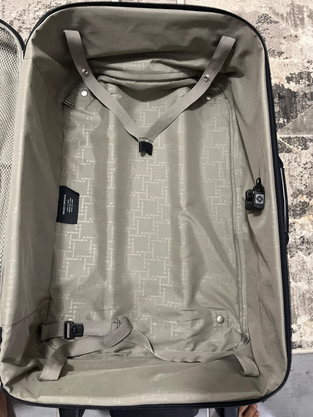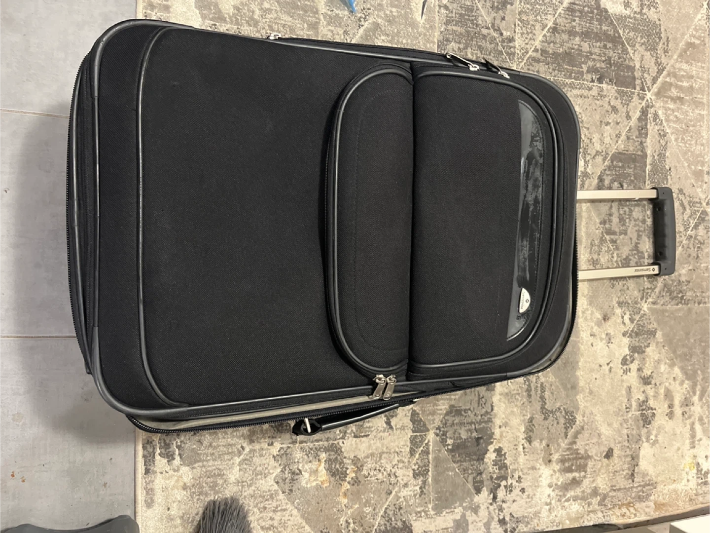 Selling a Samsonite carry-on suitcase in black. It's in great condition and ready for your next trip! The suitcase has a retractable handle and interior straps to keep your belongings secure.