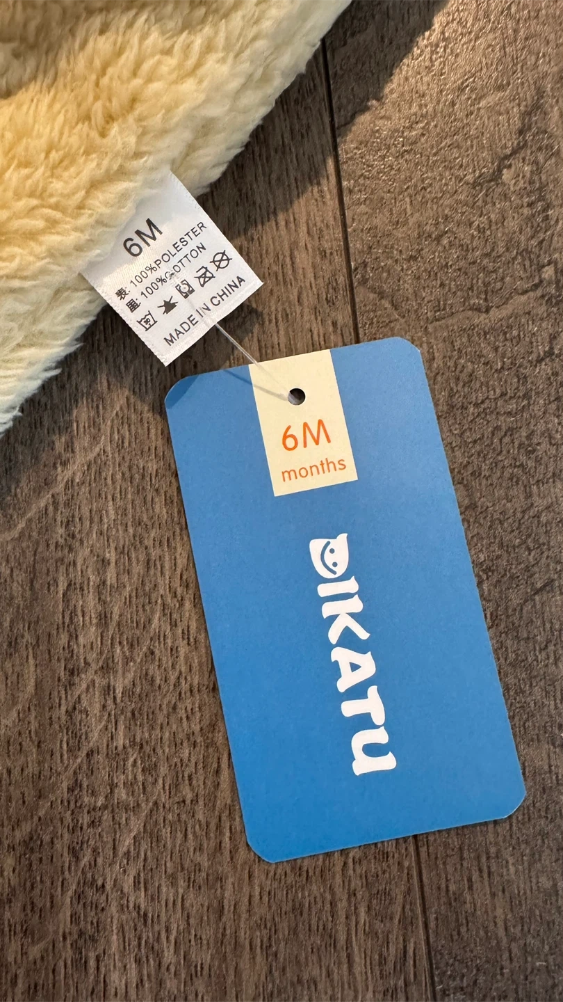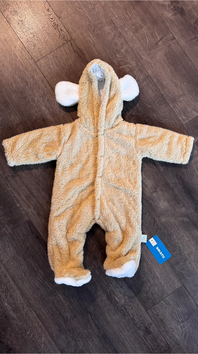 I'm selling a brand new, adorable Bikatu bear onesie! This cozy onesie is perfect for keeping your little one warm. It's made of 100% polyester and lined with 100% cotton. Size 6M (6 months)