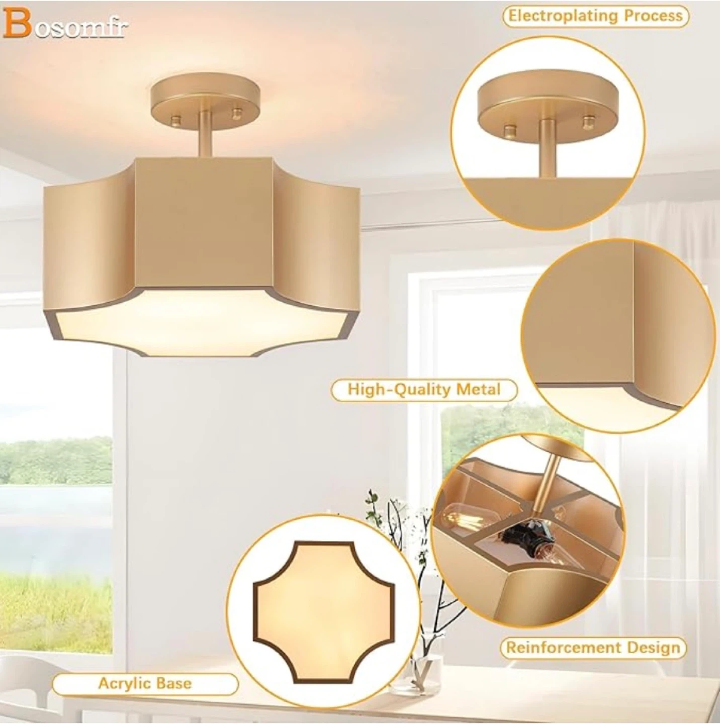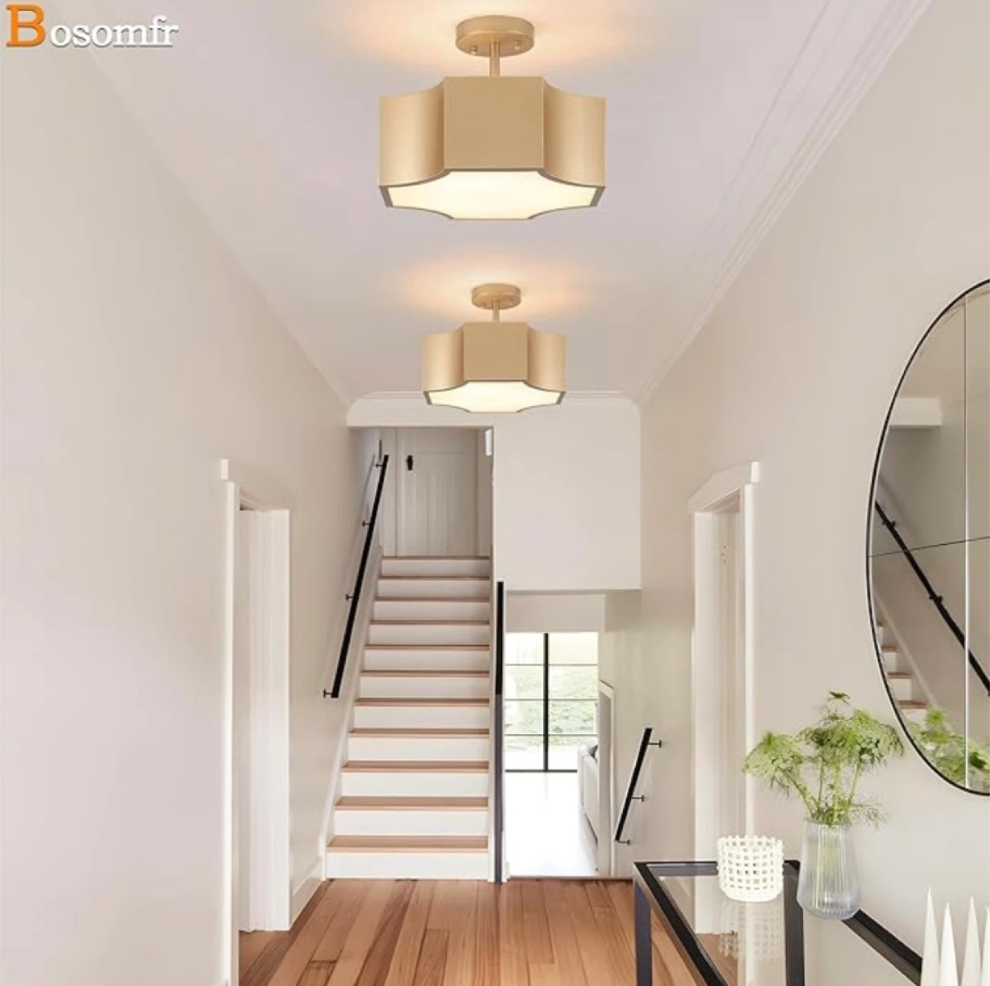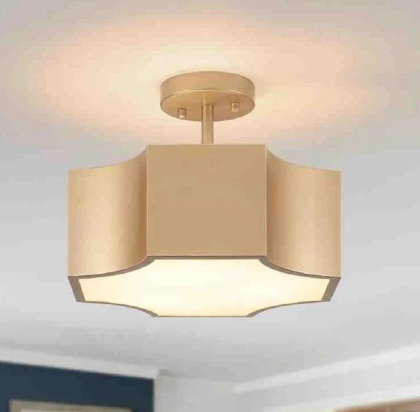Illuminate your home with this brand new in box modern gold 3-light ceiling light fixture, designed to add a touch of elegance to any room. This fixture features a stylish gold finish and accommodates three E26 base bulbs (not included), providing ample lighting. It is perfect for hallways, bedrooms, or living areas.