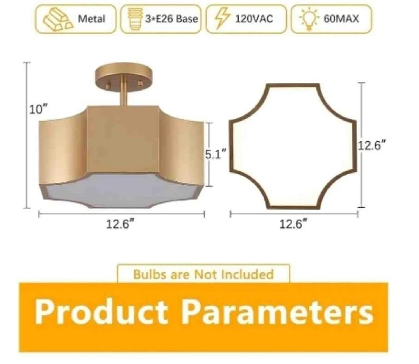Illuminate your home with this brand new in box modern gold 3-light ceiling light fixture, designed to add a touch of elegance to any room. This fixture features a stylish gold finish and accommodates three E26 base bulbs (not included), providing ample lighting. It is perfect for hallways, bedrooms, or living areas.