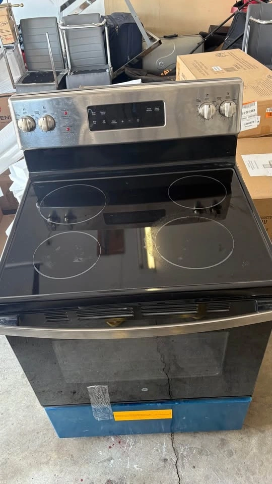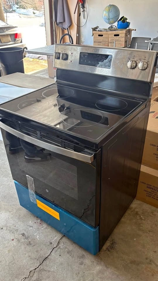 This GE electric range has only been used for one week and is like brand new. The oven and three of the burners are in perfect working condition. The top right burner needs to be repaired, which is an inexpensive fix. Let me know if you're interested!