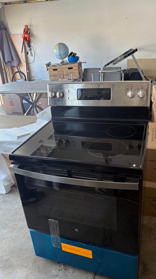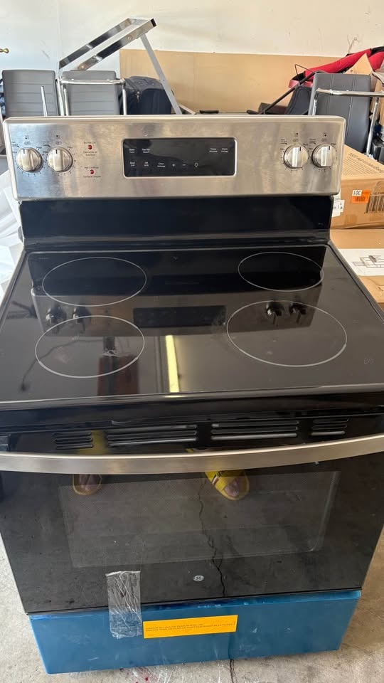 This GE electric range has only been used for one week and is like brand new. The oven and three of the burners are in perfect working condition. The top right burner needs to be repaired, which is an inexpensive fix. Let me know if you're interested!