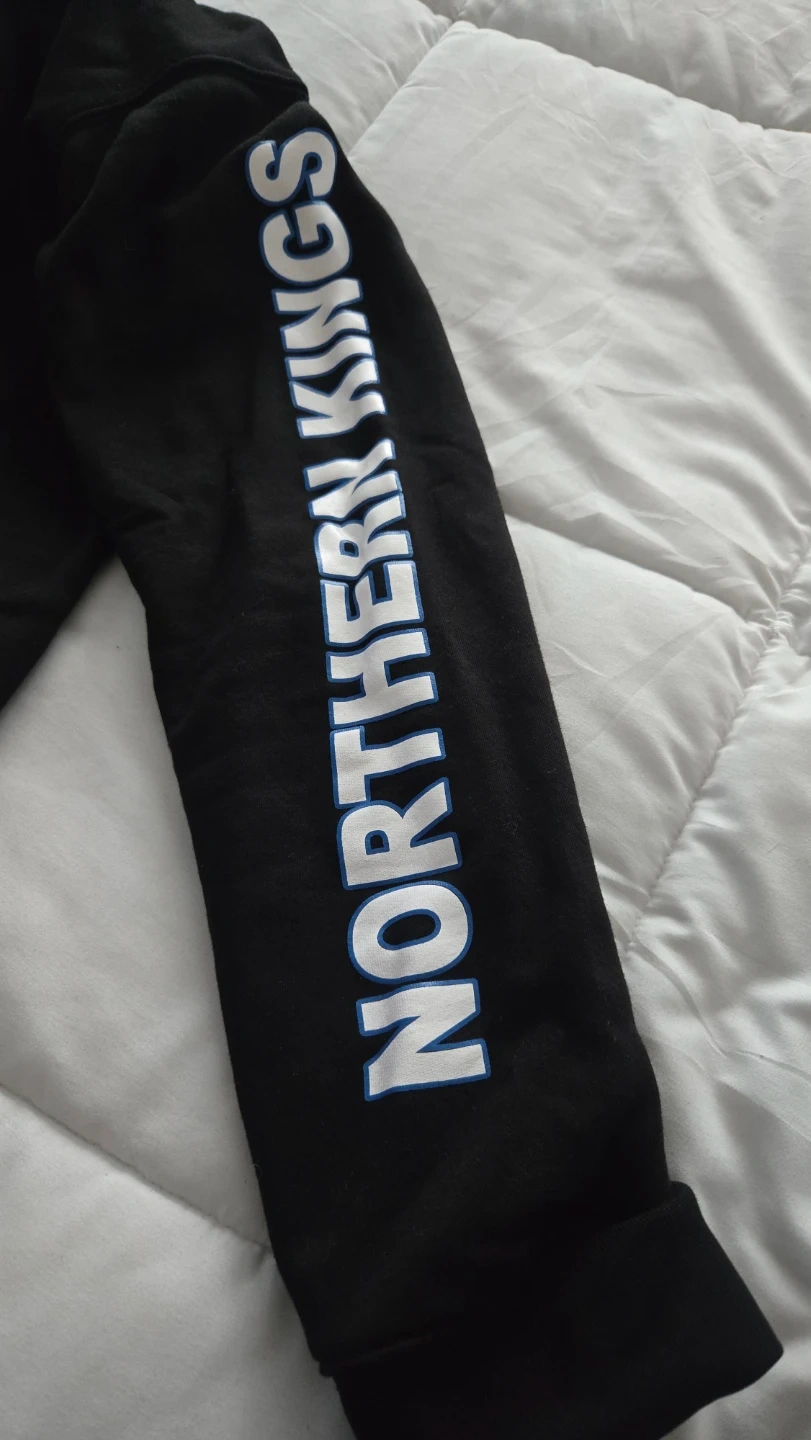 Selling a black Northern Kings hoodie. It features the logo on the front and the words "NORTHERN KINGS" down the sleeve. Great for showing your support!