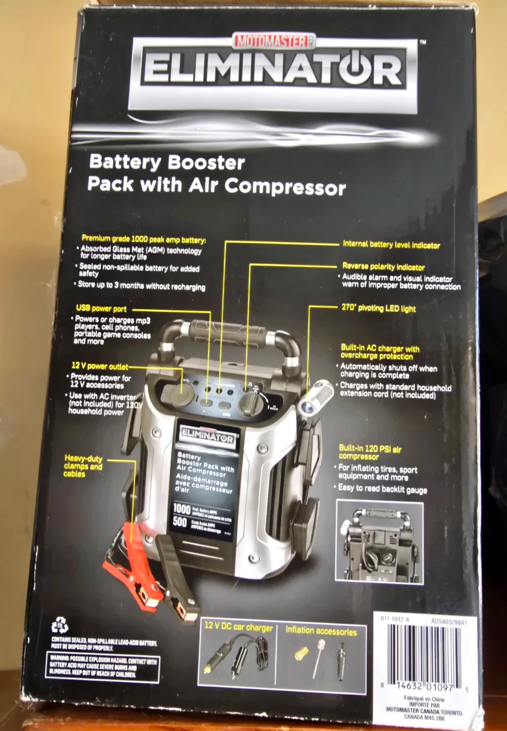 Motomaster Eliminator Battery Booster Pack with Air Compressor