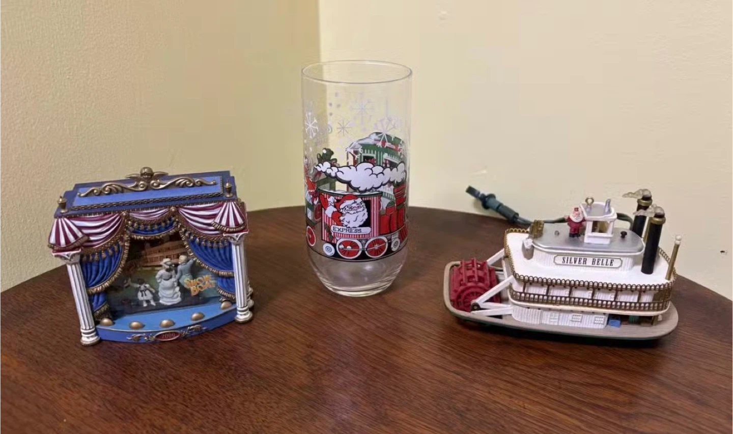 Christmas Musical Stage, Santa Express Glass, Silver Belle Boat