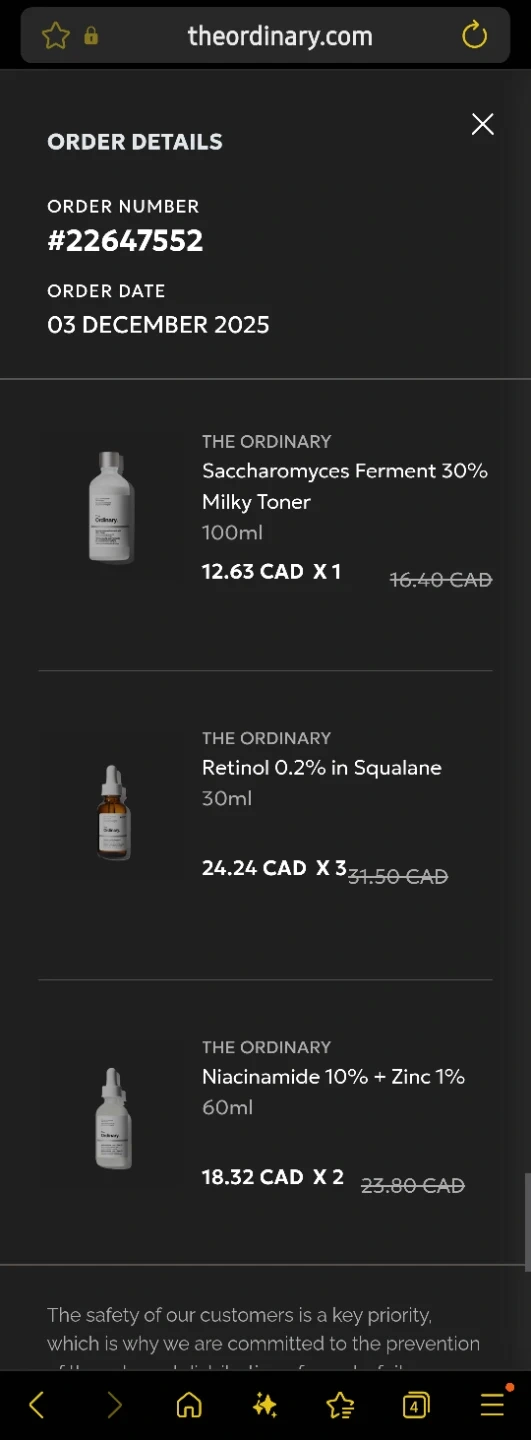 I have The Ordinary Niacinamide 10% + Zinc 1% (60ml×1) and The Ordinary Retinol 0.2% in Squalane (30ml×2) available.