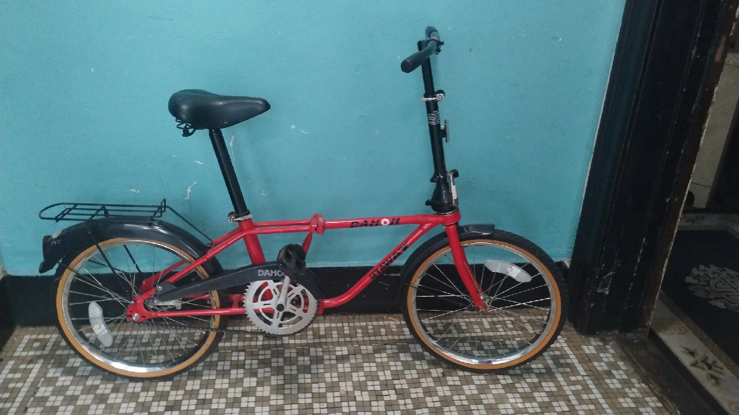 Selling a Dahon folding bike! It's red and in good condition. Perfect for city commuting or storing in small spaces. Folds up easily for transport or storage