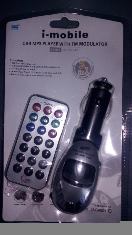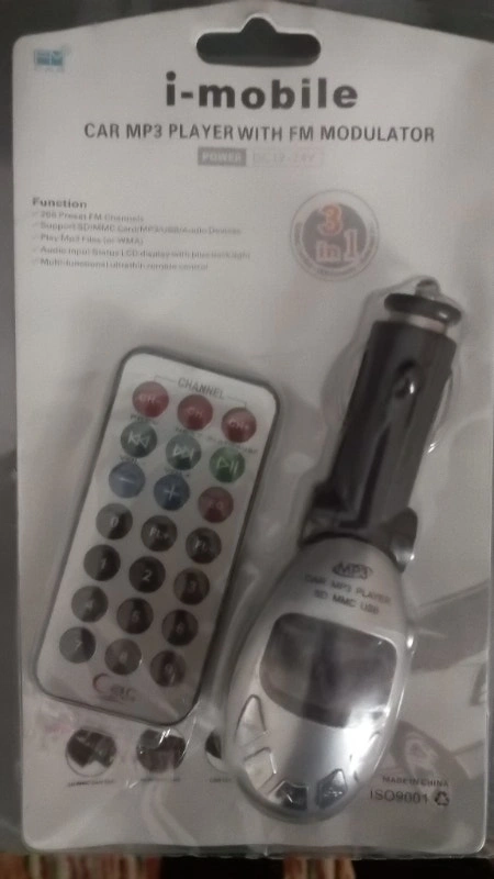 This device lets you play MP3s via your car's existing FM stereo. Just insert a USB flash drive or SD/MMC card into this device and plug it into your car's power supply socket. I also have a power adapter to use this MP3 at home and you can listen via a radio. This item is brand new. Includes: Device and ultra-thin remote control