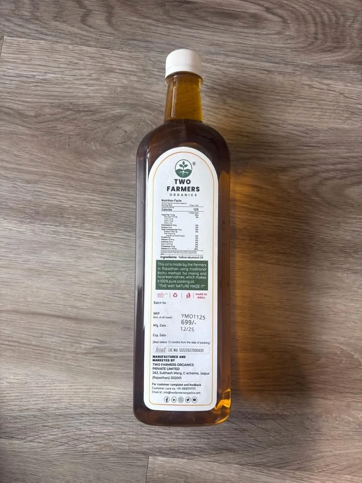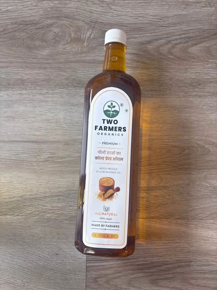 Premium Two Farmers Organics wood pressed yellow mustard oil. This is a 1L bottle, all natural and 100% vegan. Packaged in Dec 2025. Smoke and pet free house. Selling as moving out.