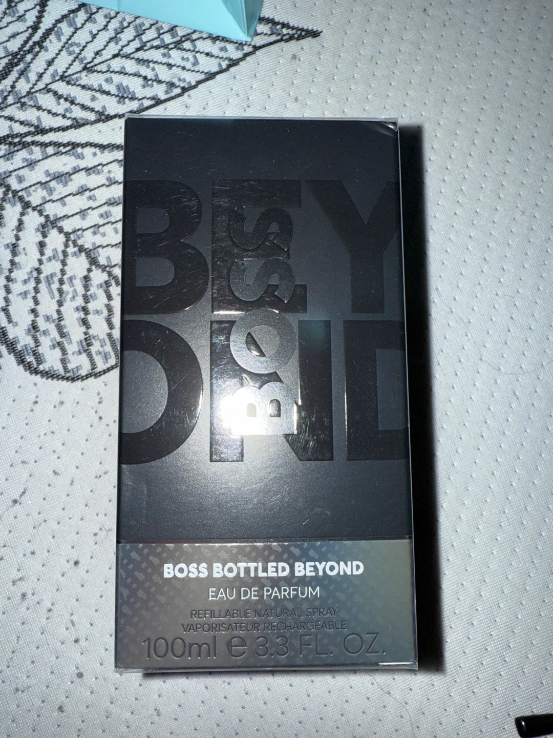 This is a BOSS Bottled Beyond Eau de Parfum spray. It's a refillable, natural spray. The bottle contains 100ml (3.3 fl. oz.) of fragrance.