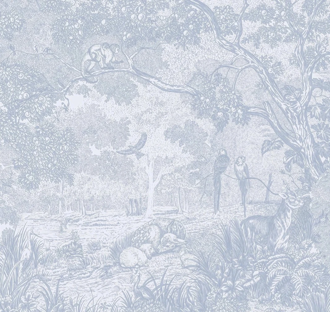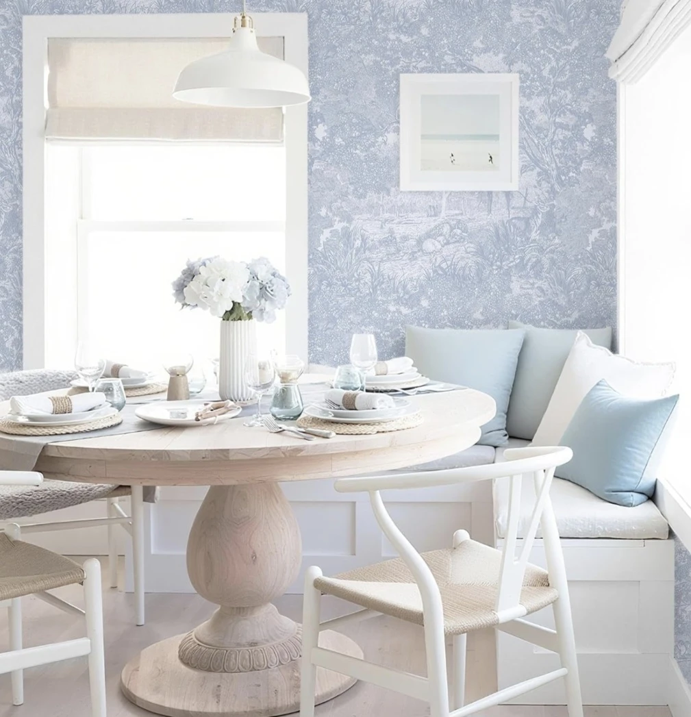 Peel & Stick Blue White Forest Floral Wallpaper 17.3" X 78.7"