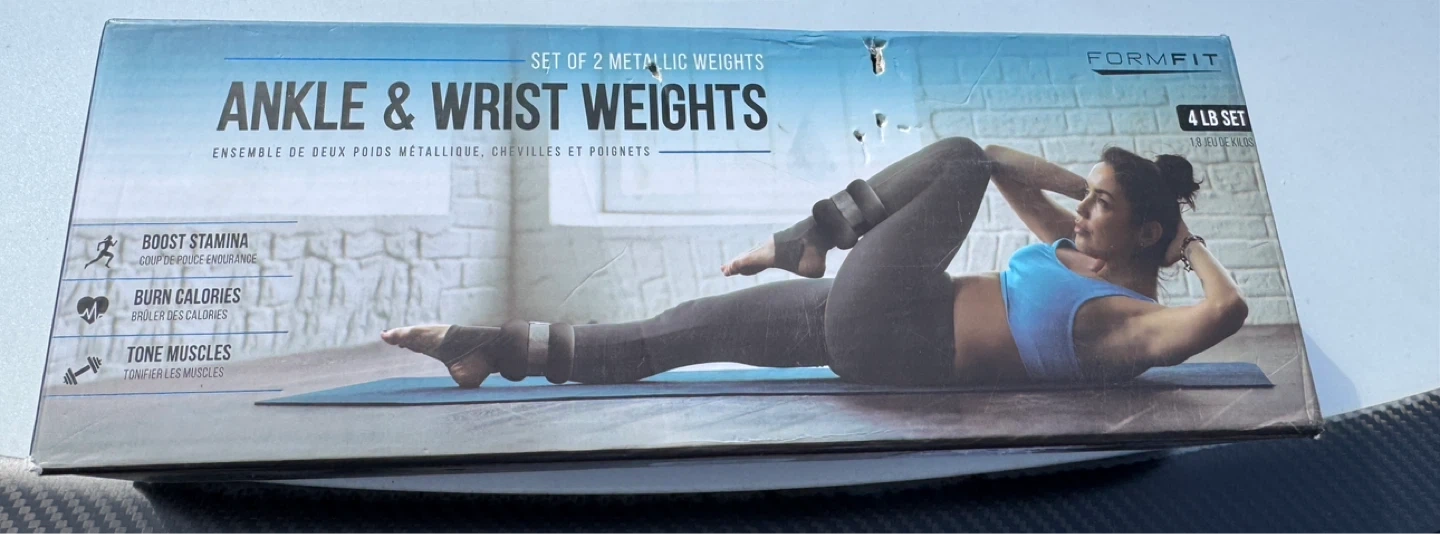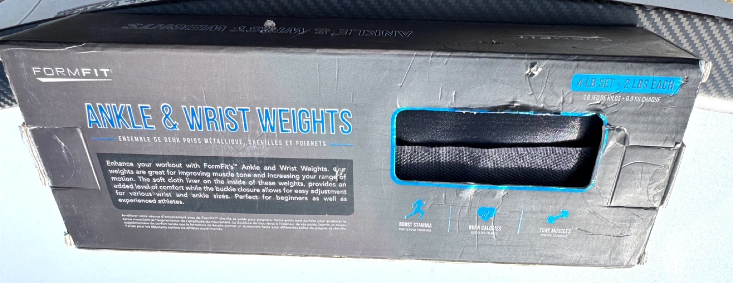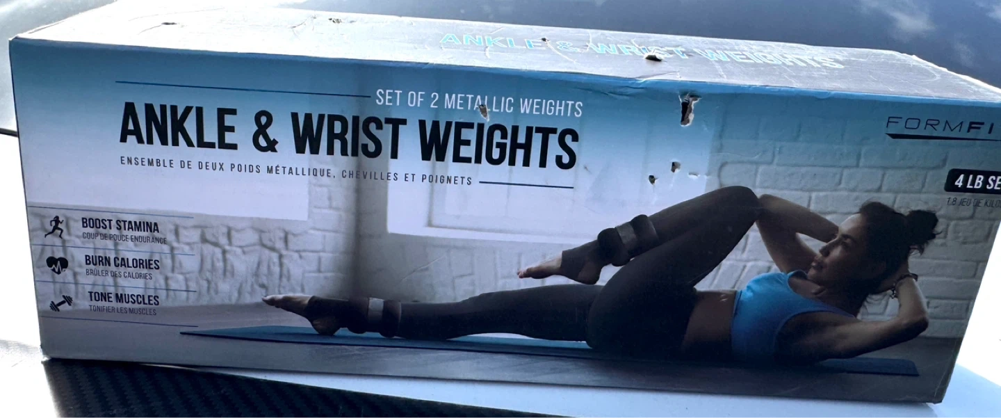 FormFit ankle and wrist weights are great for improving muscle tone and increasing your range of motion. This is a 4 LB set, with each weight being 2 LB. They are metallic weights with a soft cloth liner.