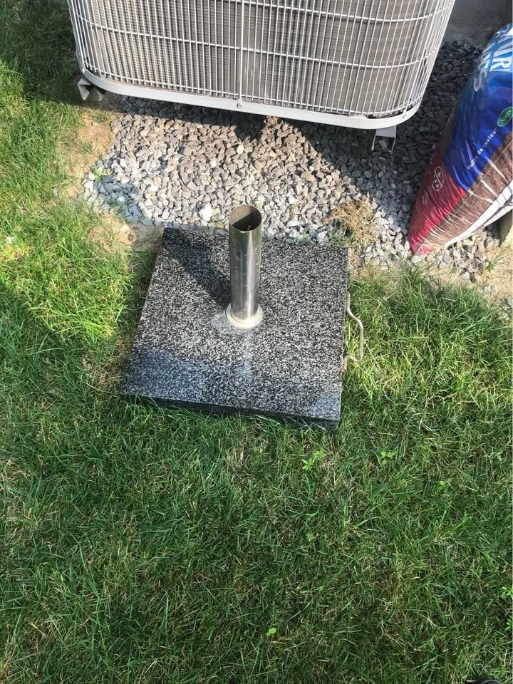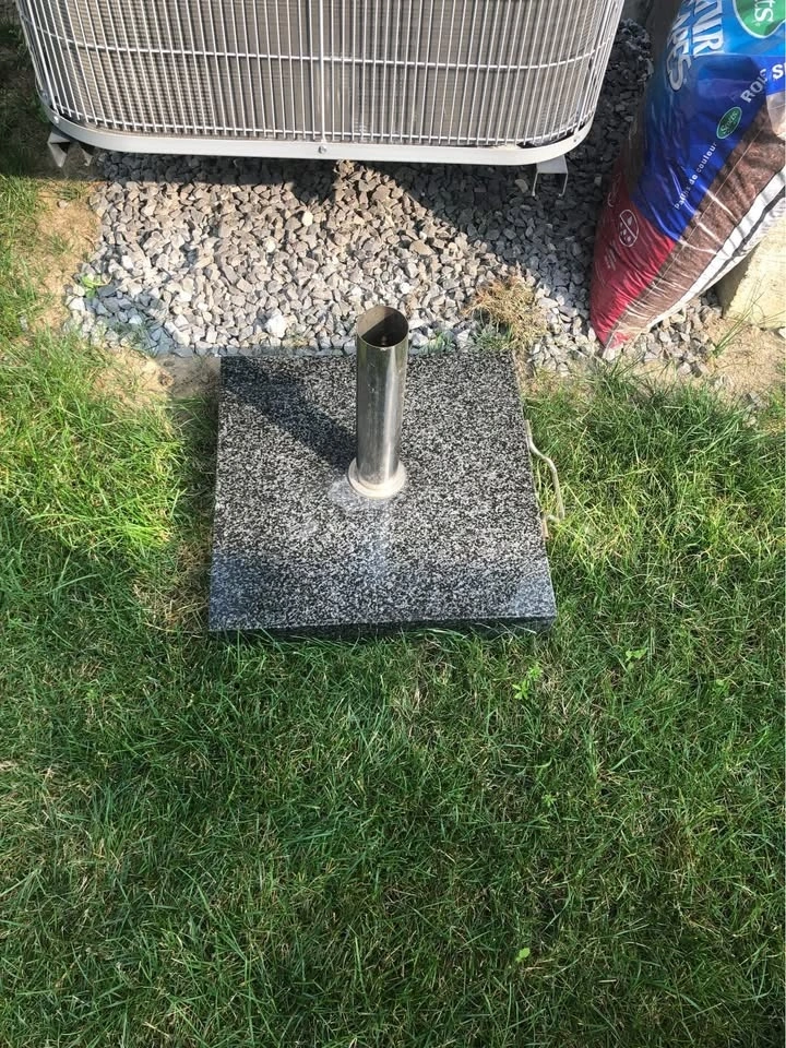 Used. Very Heavy Marble Stand (50lbs, will assist with moving). Umbrella is in good quality! Stand + umbrella $50.