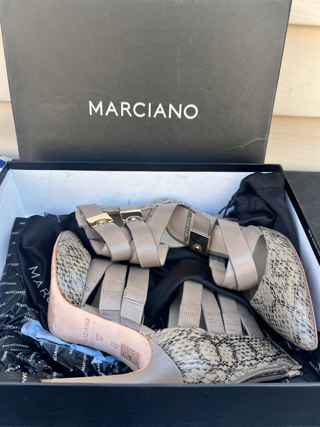 MARCIANO Snakeskin Strappy Heels Size 7