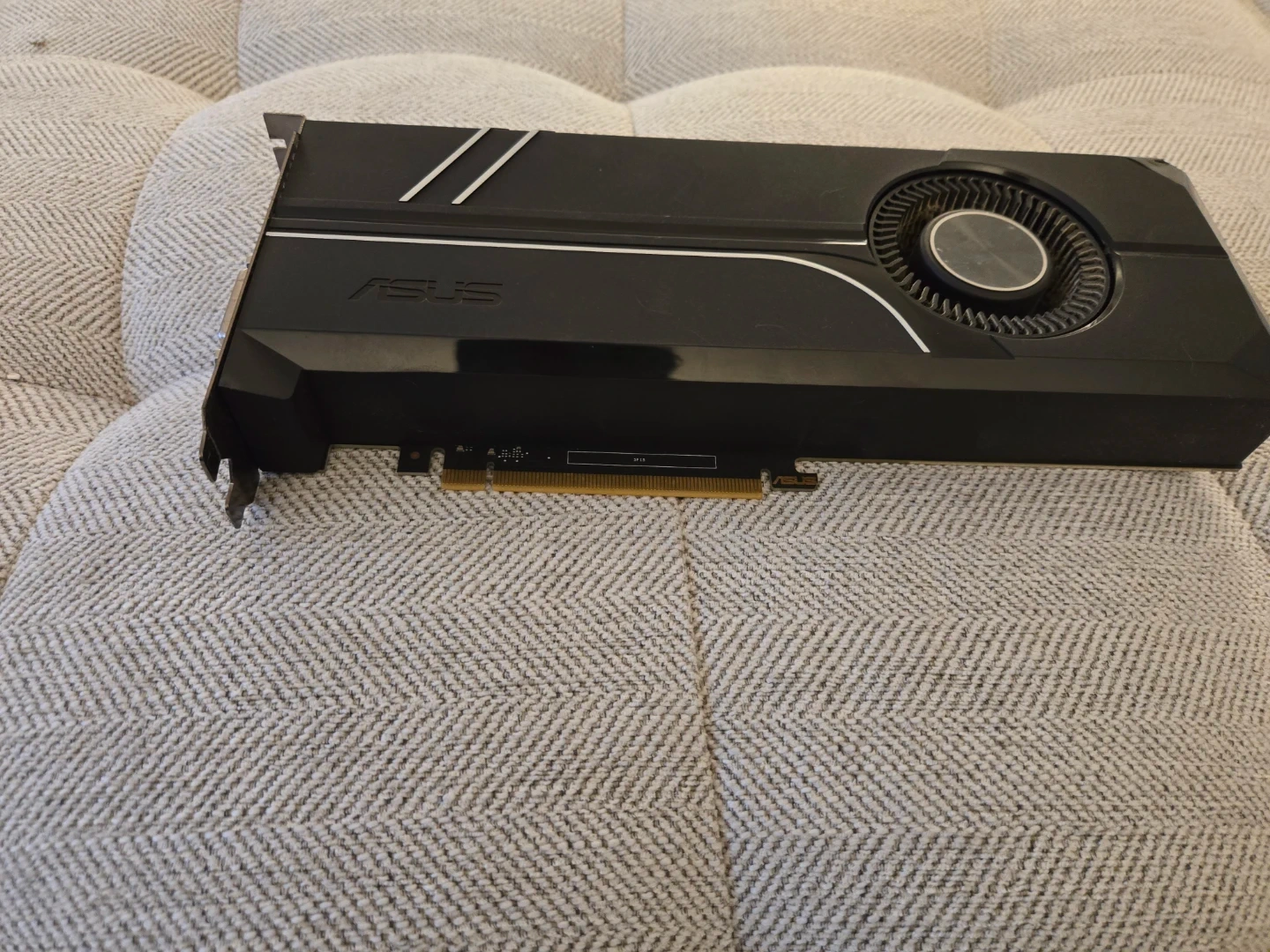 ASUS graphics card with HDMI and DisplayPort outputs. Black colour. It's a powerful component for your PC build.