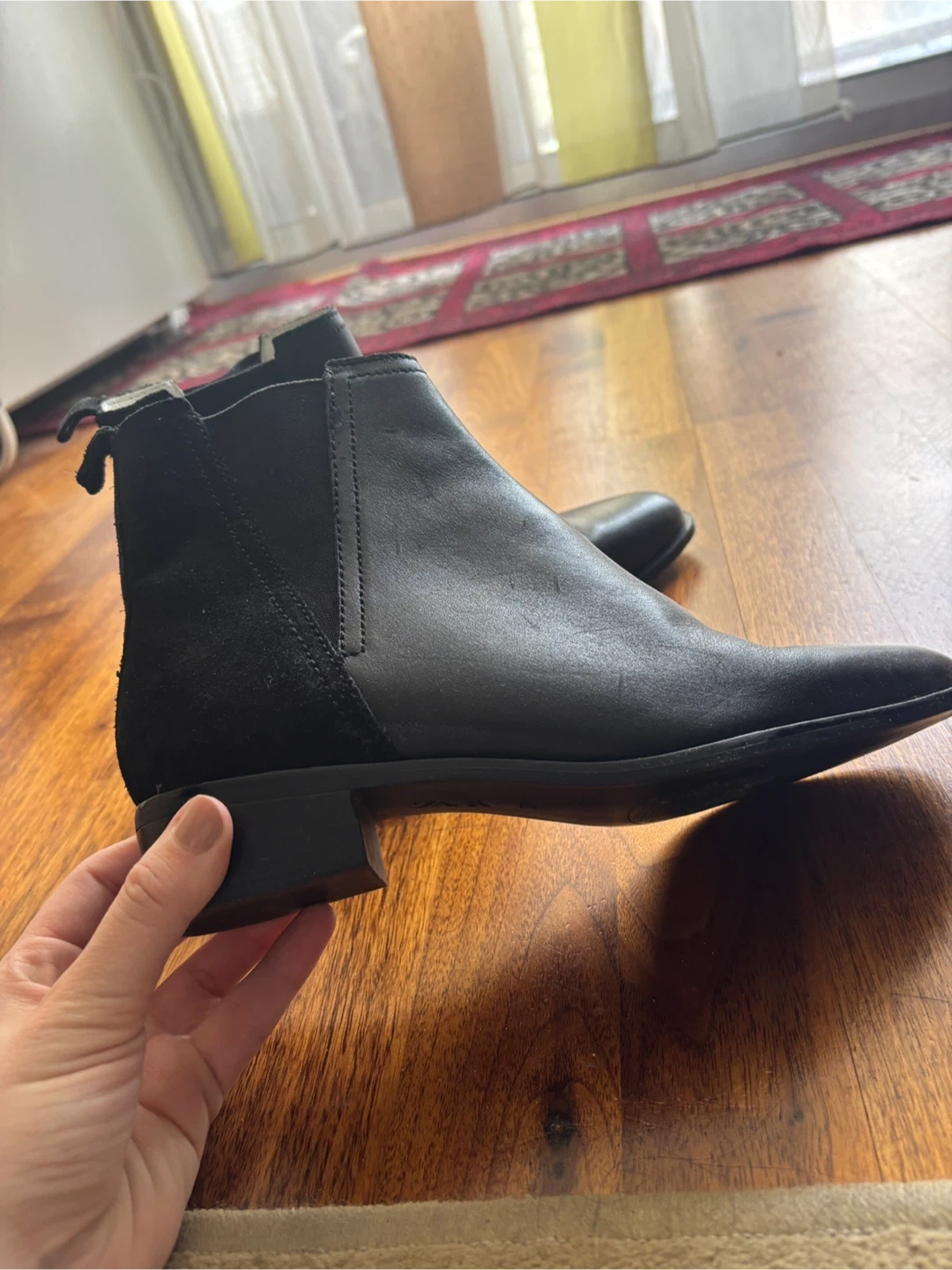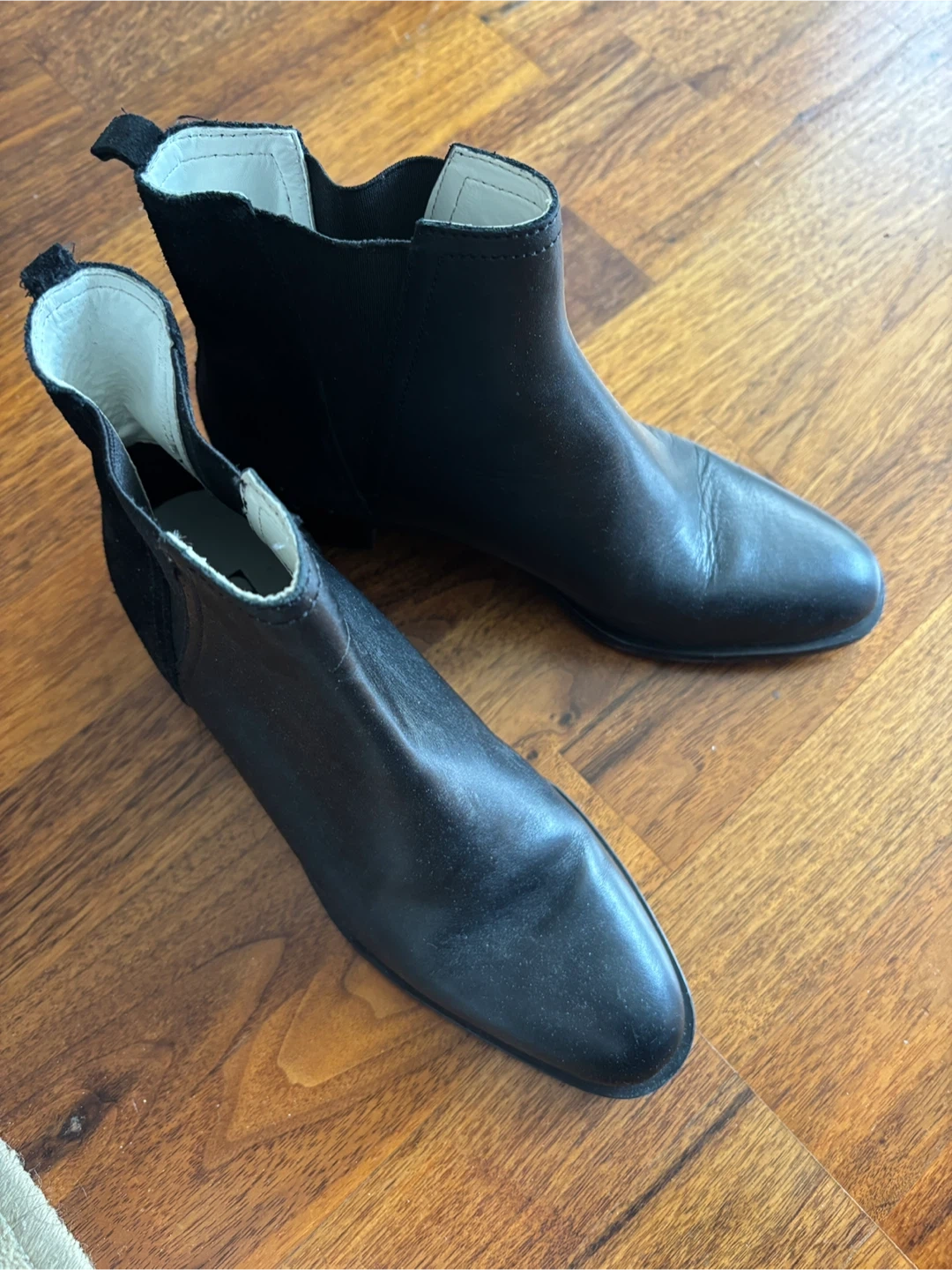 Buy & SellBlack Zara Chelsea Boots Size EU 37Black Zara Chelsea Boots Size EU 37$30Black leather and suede Chelsea boots from Zara. Elasticated side panels for easy on and off. Comfortable flat heel. EU size 37.ConditionNewBrandZaraWHERE TO MEETMetro (Markham/Eglinton)View MapSELLERverifiedEssieScarborough Village20314 reviews0 chats·0 favorites·10 viewsSEND CHAT TO SELLERHi Essie! I’m interested in your listing.Hi Essie! I’m interested in your listing.Get the Karrot app to chatSign In to chat