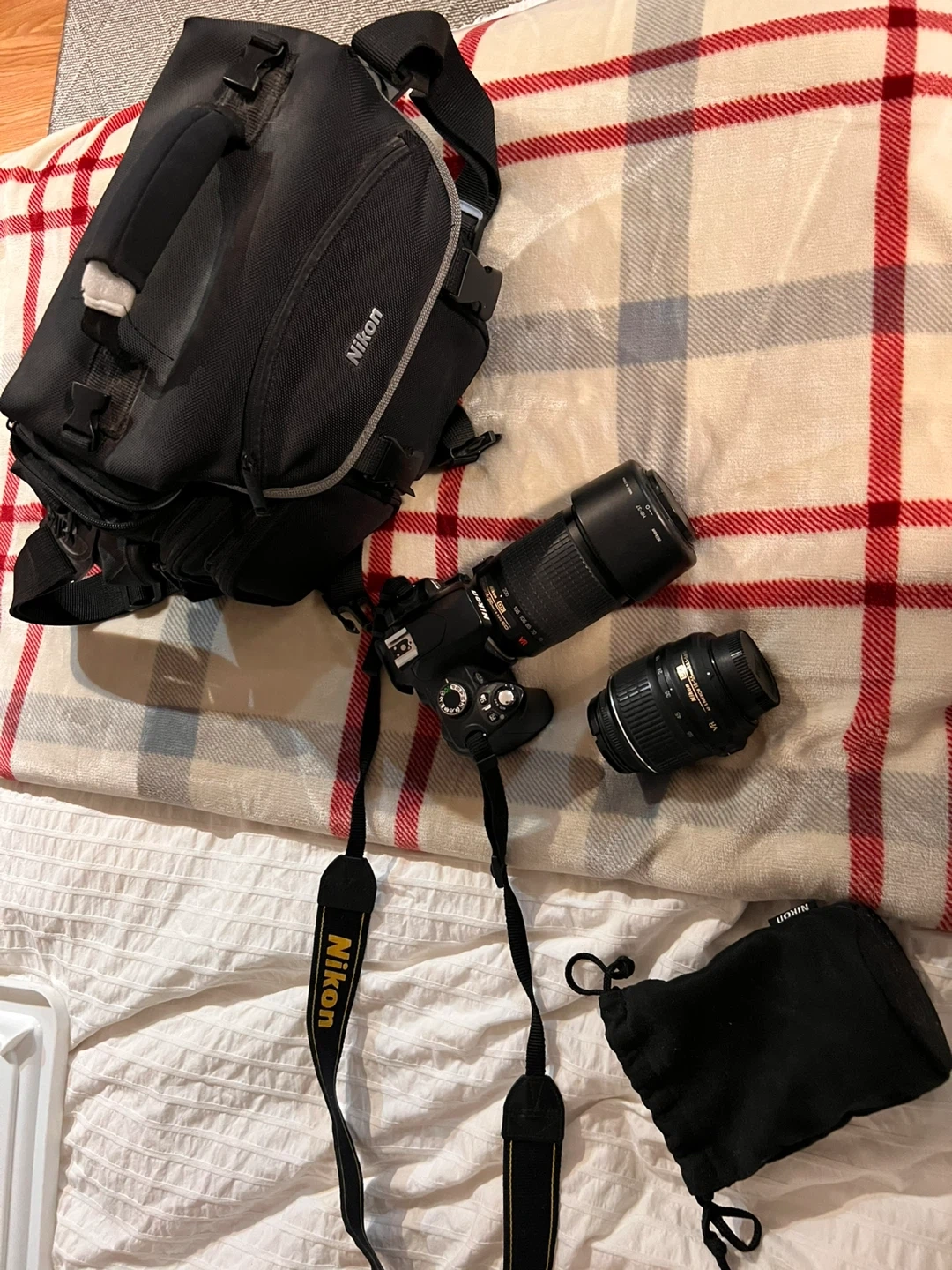 Selling a Nikon D60 DSLR camera in good condition. Includes the camera body, zoom lense, a camera bag with strap. I also have the manual. Great for someone starting out with photography or looking for a reliable backup camera!