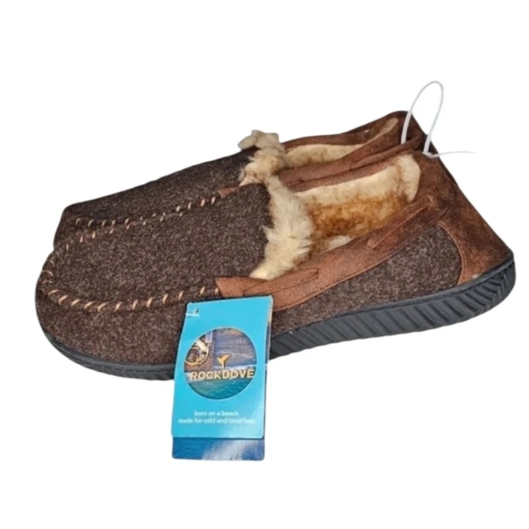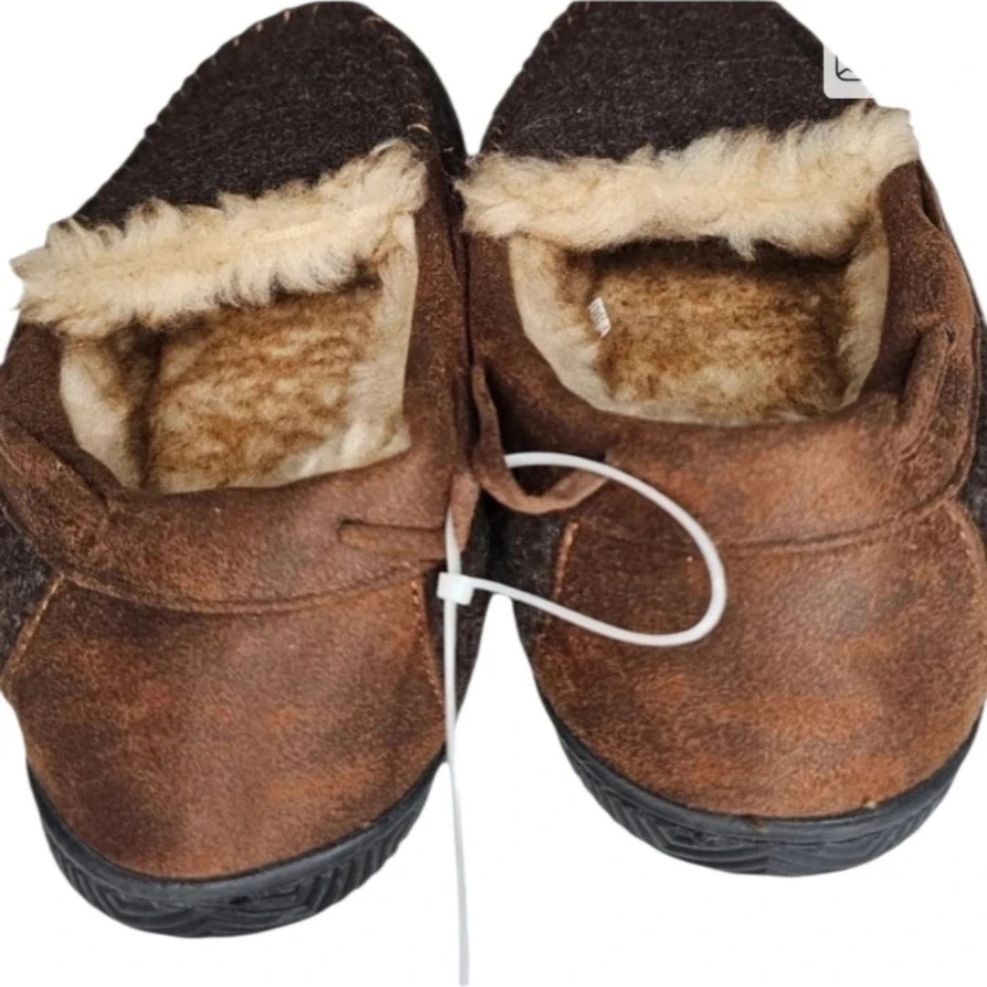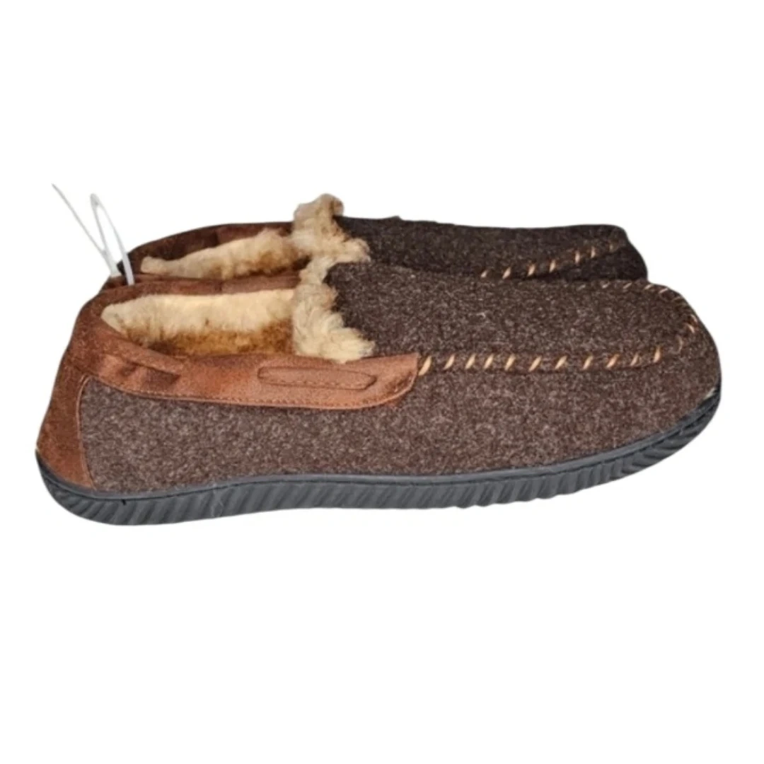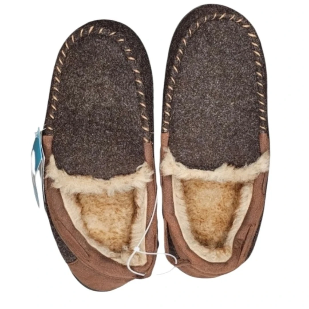 Brown Moccasin-style Slippers w Faux Fur Lining