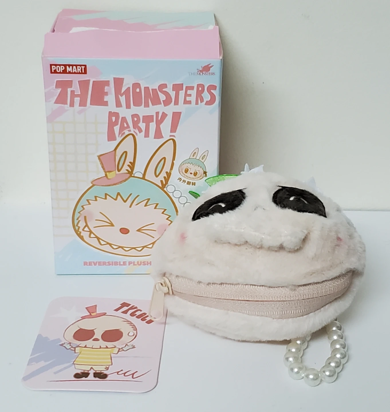 This authentic POP Mart Tycoco plush toy is reversible and comes with a pearl wrist strap. It's a cute and unique accessory for fans of the series. The plush is soft and fuzzy, with embroidered details. Includes original box and a collectible card.