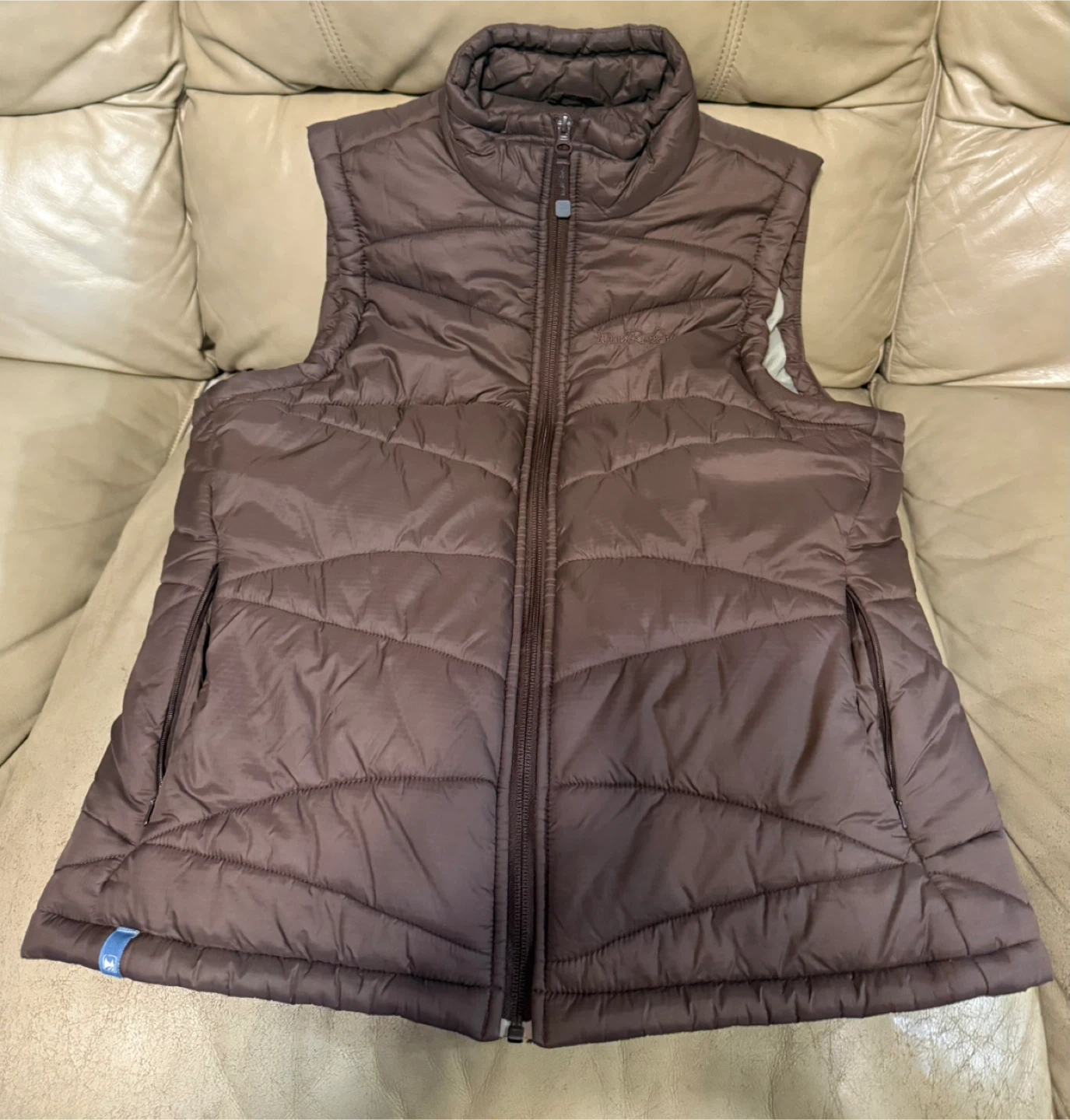 Puffer vest by Wind River. It's a warm brown colour. Zipper front with pockets.