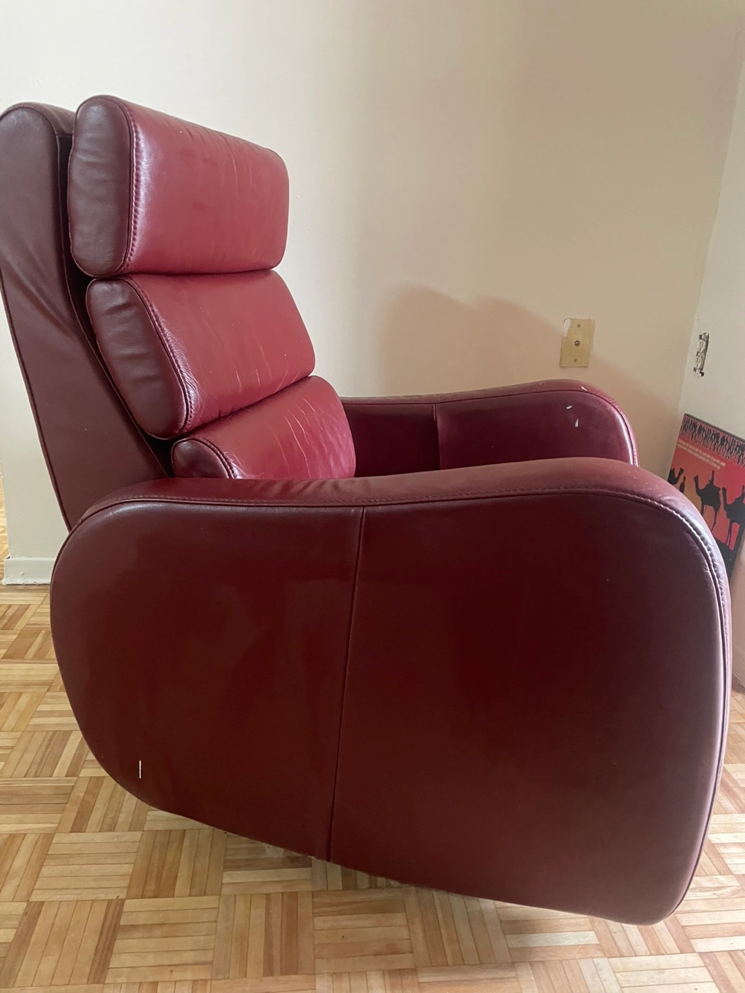 Buy & SellReclining Leather Chair - BurgundyReclining Leather Chair - Burgundy$800Comfortable burgundy genuine leather electric recliner. Features a padded headrest and curved armrests. Shows some wear.WHERE TO MEETDundas square areaView MapSELLERverifiedAJDowntown Yonge812 reviews0 chats·0 favorites·17 viewsSEND CHAT TO SELLERHi AJ! I’m interested in your listing.Hi AJ! I’m interested in your listing.Get the Karrot app to chatSign In to chat
