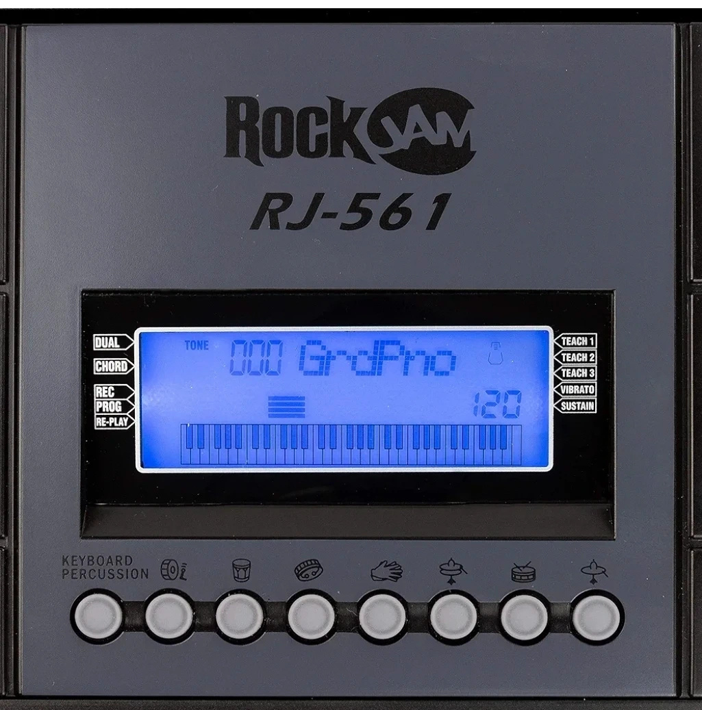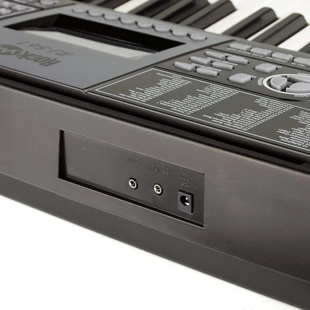This RockJam RJ-561 keyboard piano has 61 full-size keys and an LCD display panel. It comes with