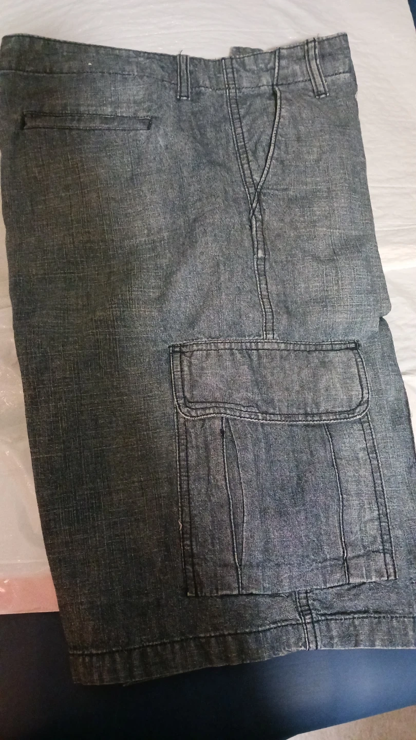 These are Gap cargo shorts in a size 10. They're made of denim material and were manufactured in Indonesia. These shorts are great for casual wear but can be dressed up.