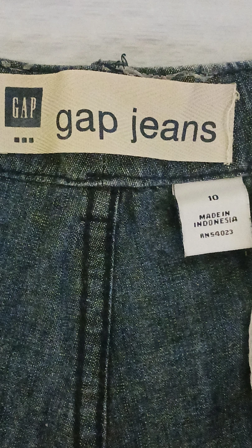 These are Gap cargo shorts in a size 10. They're made of denim material and were manufactured in Indonesia. These shorts are great for casual wear but can be dressed up.