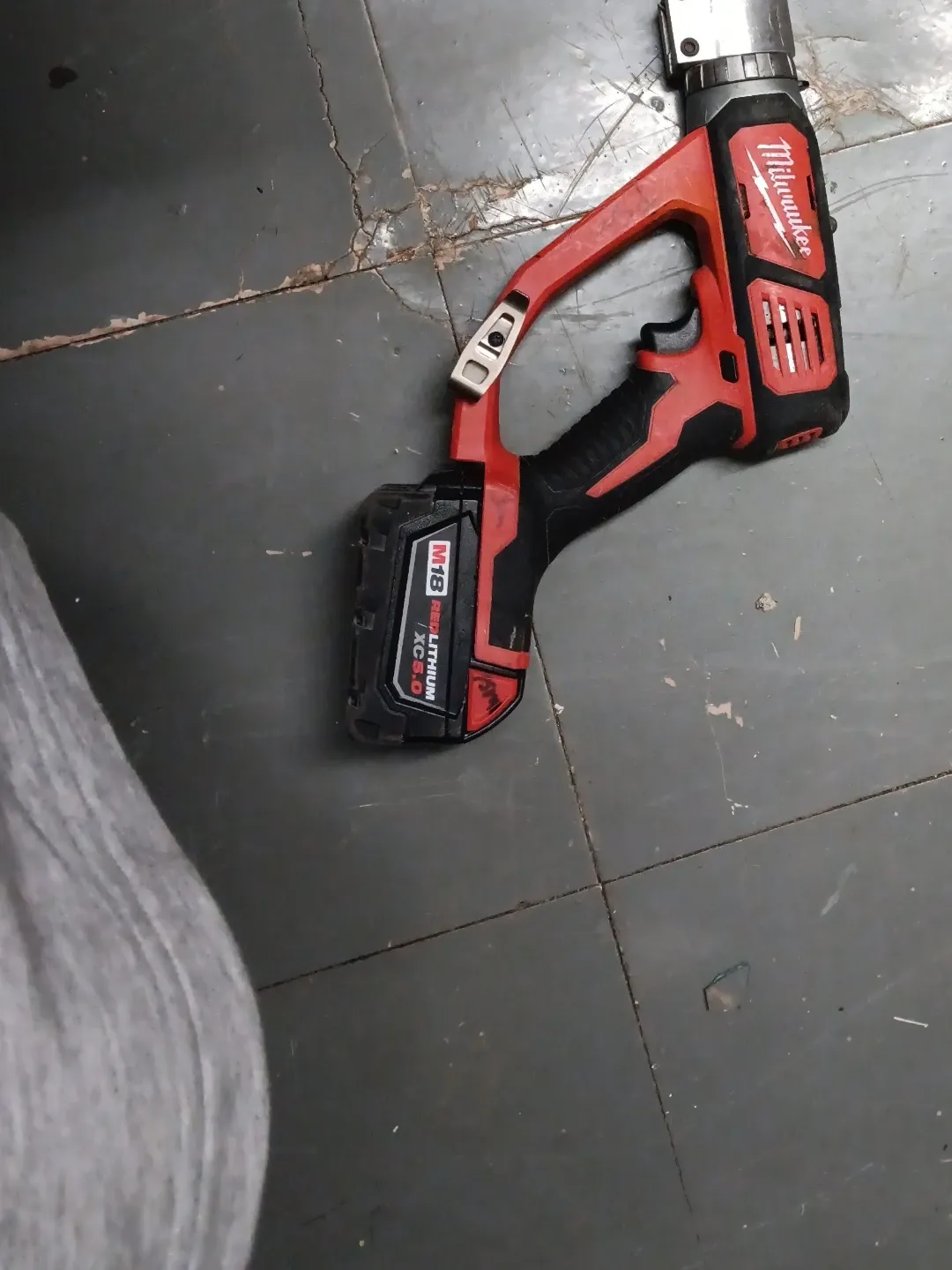 This is a Milwaukee M18 cordless sheet metal double cutter shears.It runs on M18 REDLITHIUM XC 5.0 batteries. Includes the gun and battery pack. Sheet metal cordless shears cutter