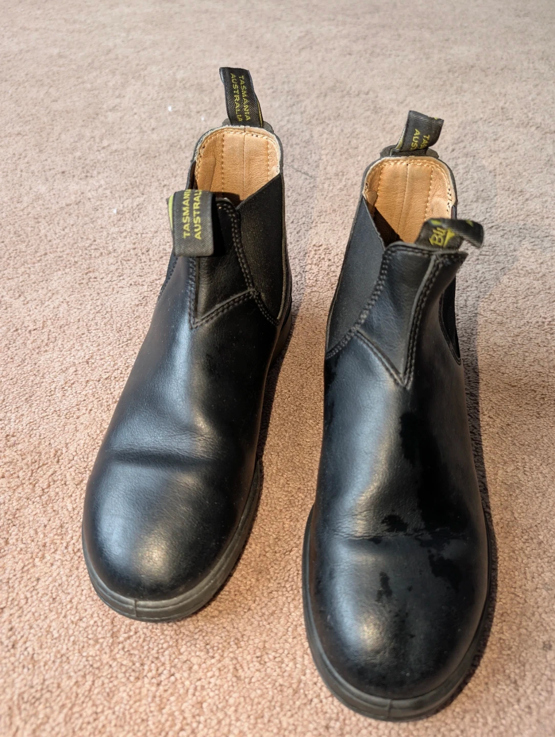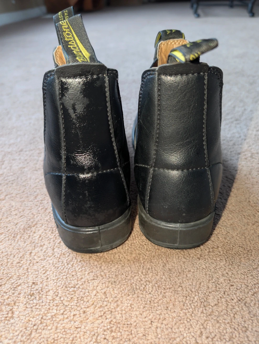 Classic Blundstone Chelsea boots in black leather. Features elastic side panels for easy on and off. Durable construction for everyday wear. These boots are waterproof and breathable.