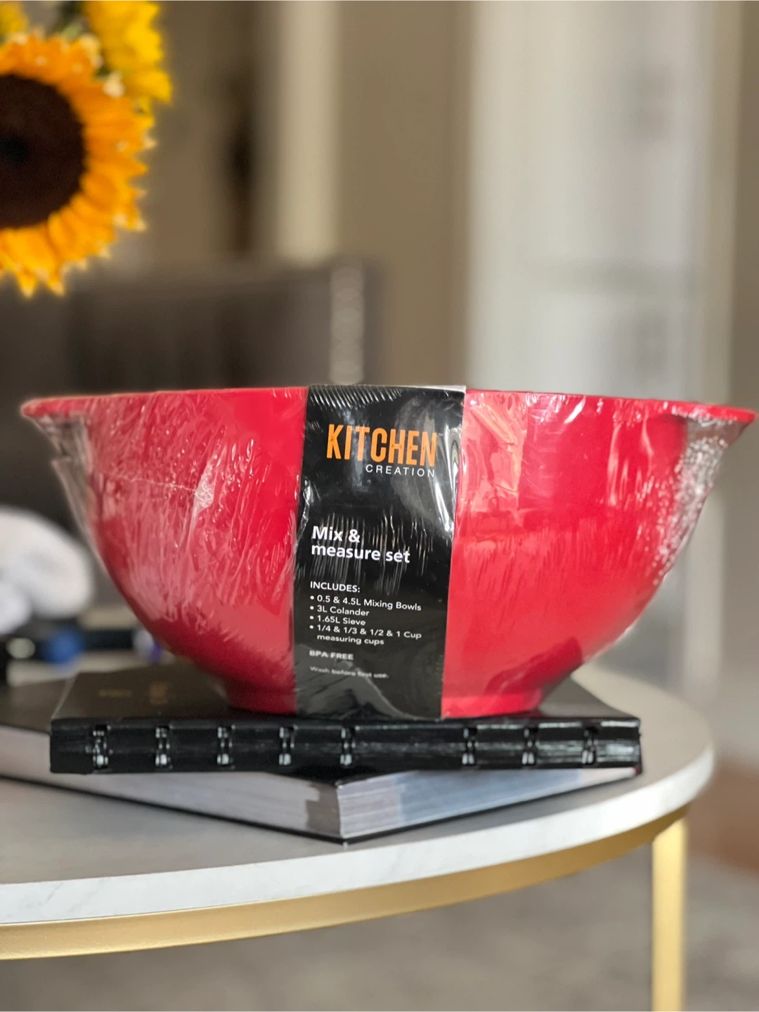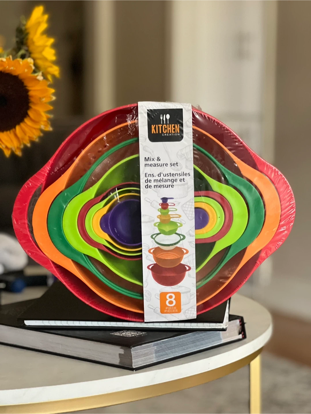 Selling a brand new, still-in-packaging Kitchen Creation Mix & Measure set! This colourful 8-piece set includes various sized mixing bowls and measuring cups, perfect for all your baking and cooking needs. The set includes: