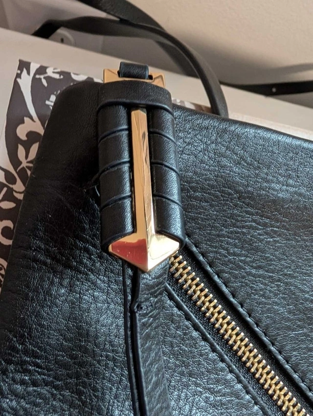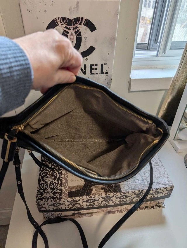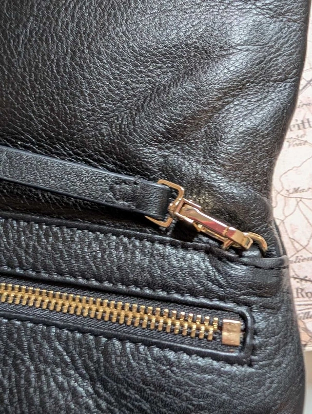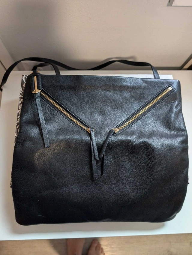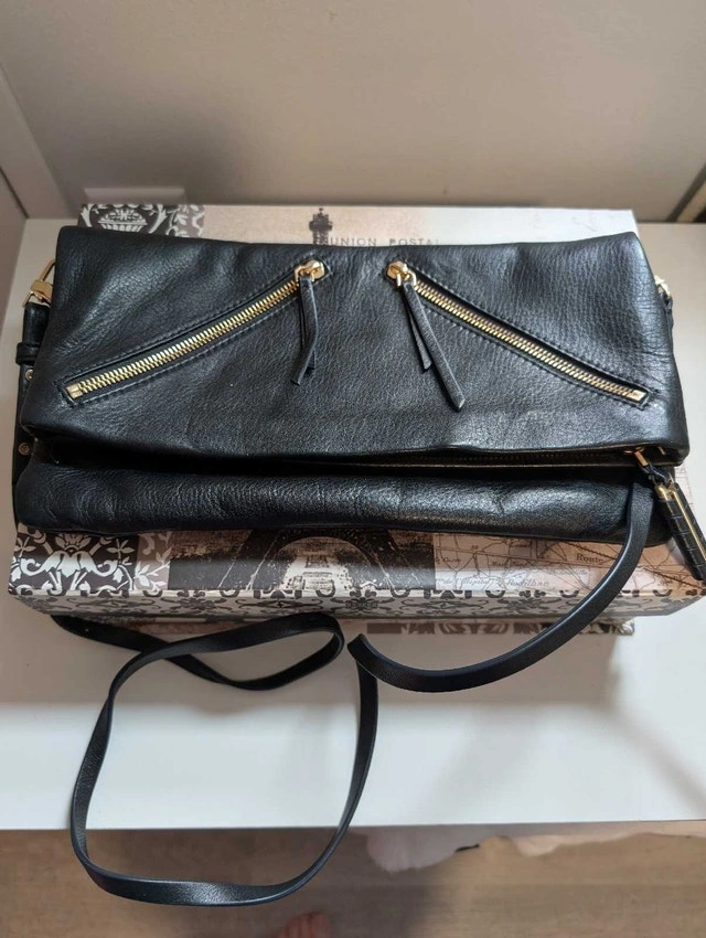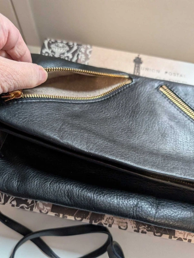 For all you Stella & Dot lovers, it's your lucky day because I don't have room to store all my pretty things, so they need to find a new home. I'll be posting some S&D jewelry later as well. This NEVER USED genuine leather (so soft) envelope bag, that folds to a clutch, has a removable adjustable shoulder strap, as well as two angled zippers on the front that you can actually put something small into each one. There is also a large zipper on the back, and the top as well as a fob. The hardware is all jewellery grade, as all you S&D collectors will appreciate. You can wear it as a clutch or a crossbody. When fully open, it's about 13x23 inches. This holds more than you would expect. It's a gorgeous bag. Pickup area Grantham Ave and Carlton Street. From a very clean smoke-free home. Please see my other ads, thank you.