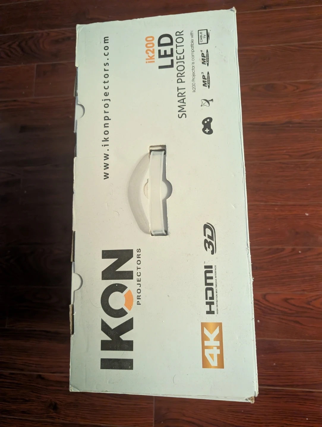 This is an IKON IK200 LED Smart Projector. It supports 4K HDMI and 3D. The projector features a 3D Optimized Light Engine.