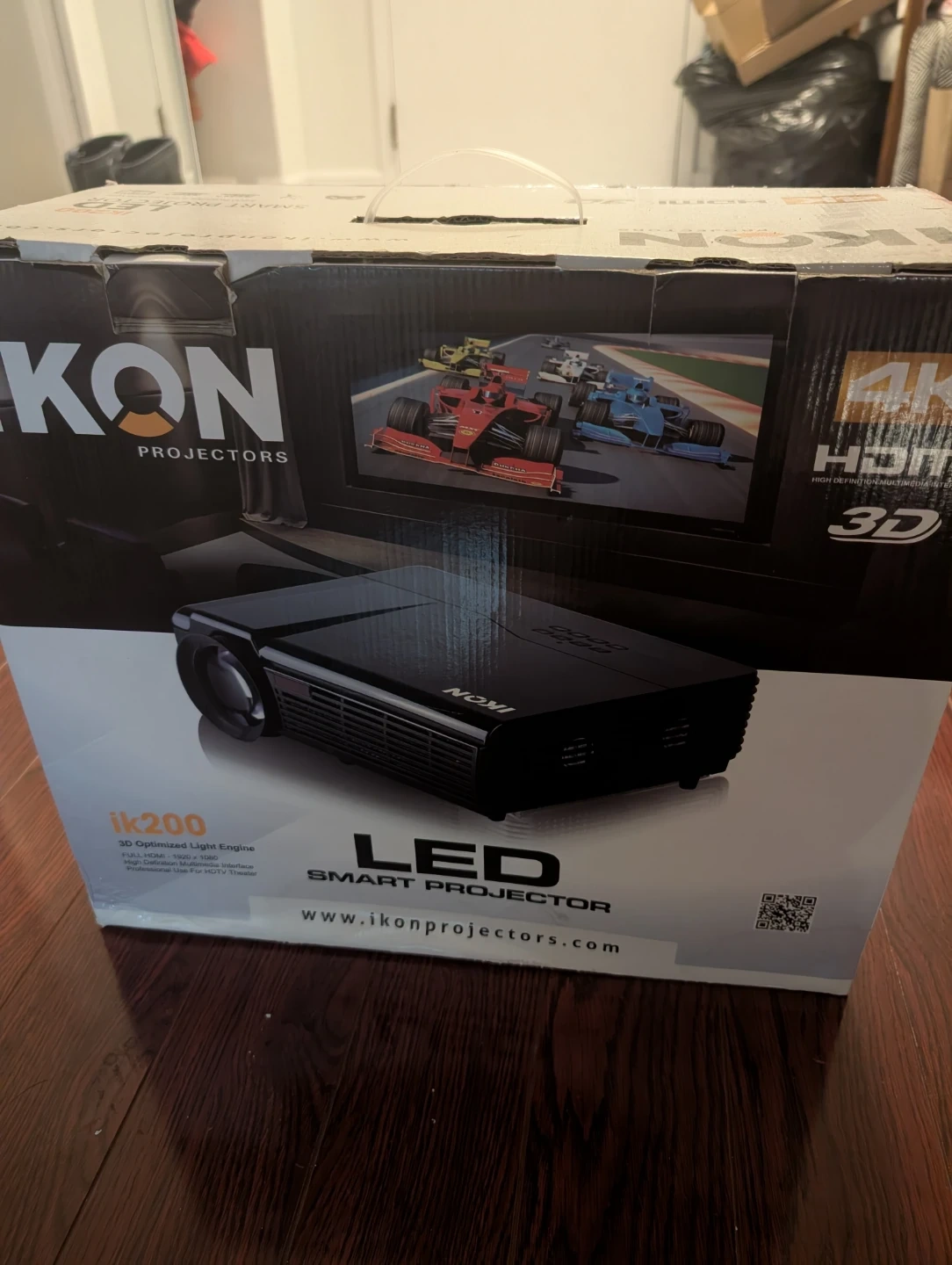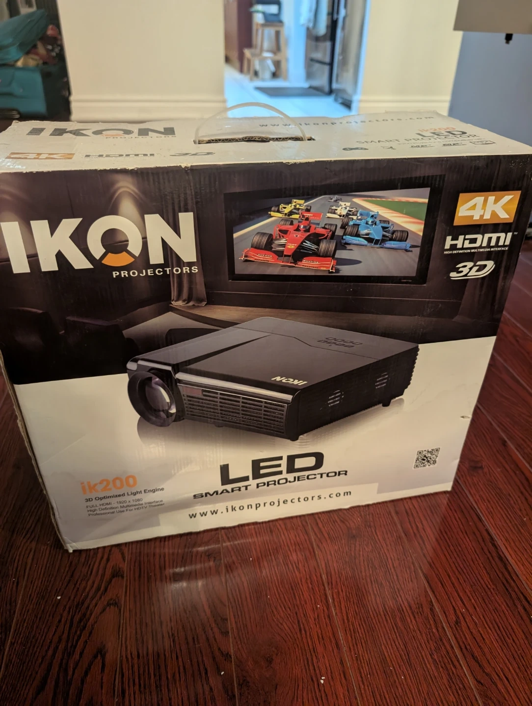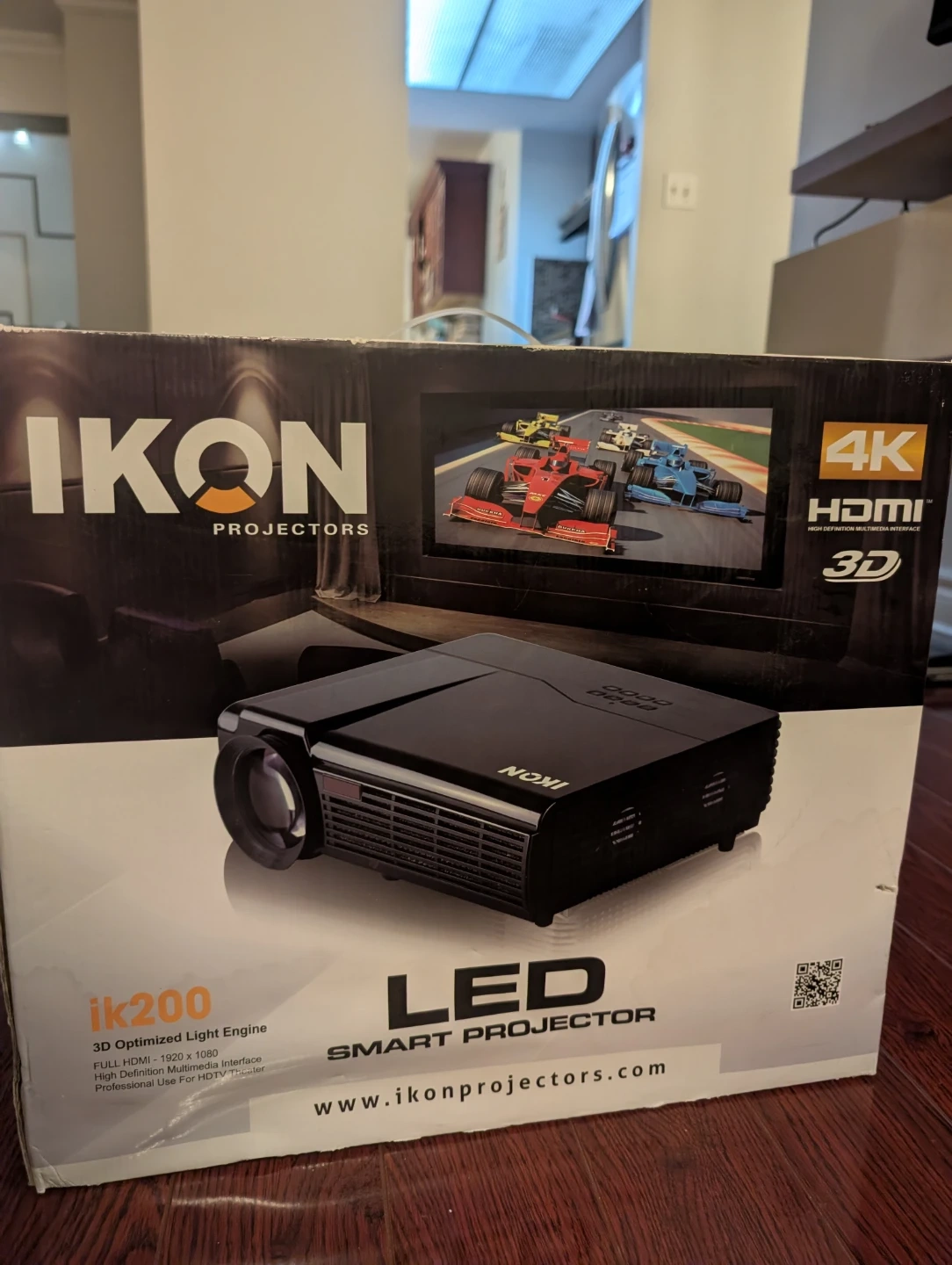 This is an IKON IK200 LED Smart Projector. It supports 4K HDMI and 3D. The projector features a 3D Optimized Light Engine.