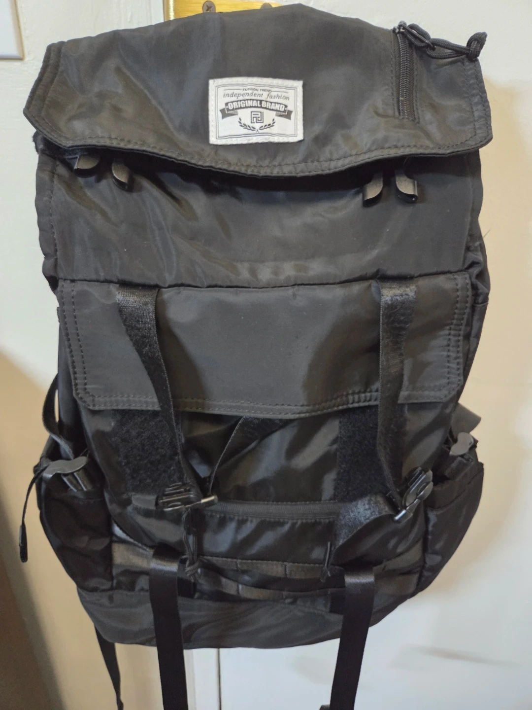 This black backpack is made of durable nylon. It features multiple pockets and adjustable straps for comfort. The interior has a padded compartment for a laptop. It's a great everyday bag for school or travel!