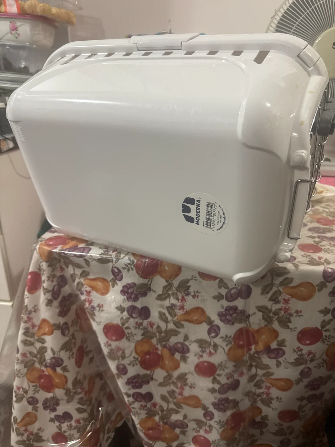 Selling a Moderna cat carrier in great condition! It's white with cute cat designs on the side. Perfect for vet visits or travel