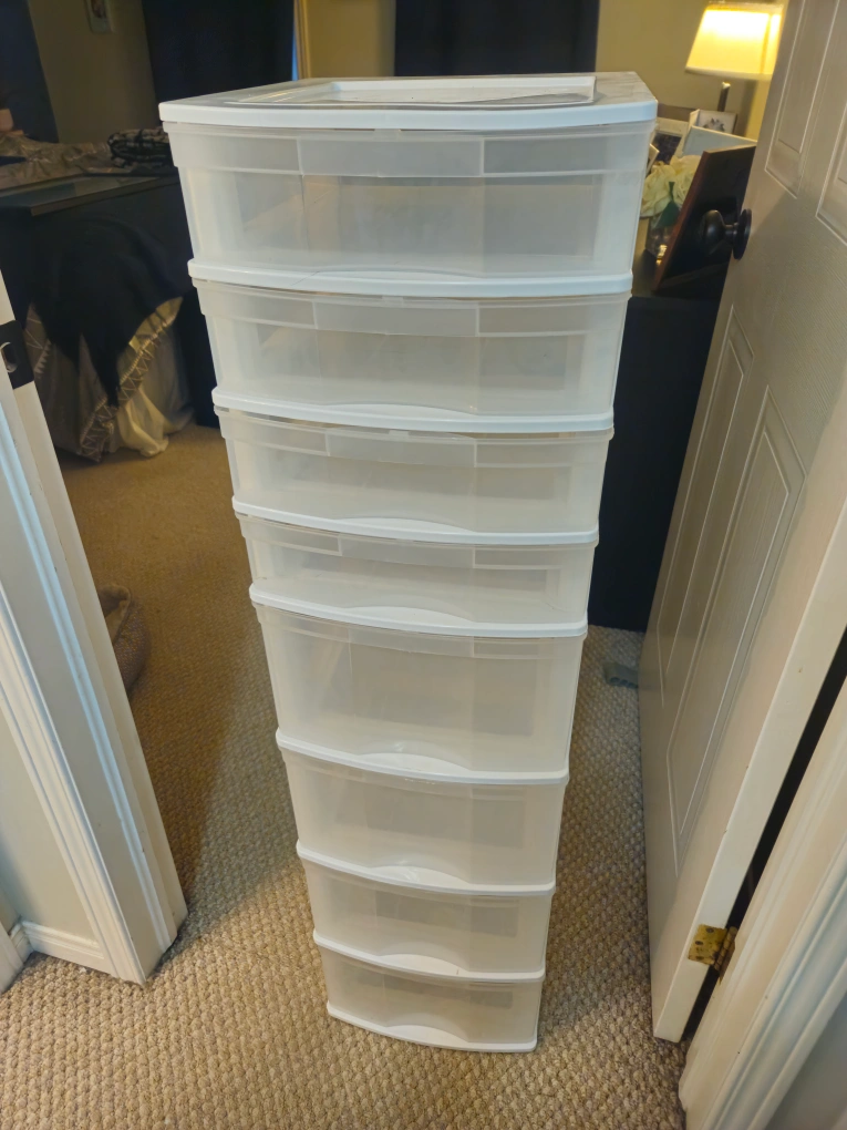 Selling a handy plastic storage tower with 8 drawers! It's great for organizing all sorts of items and keeping things tidy. It's in good condition and ready for a new home