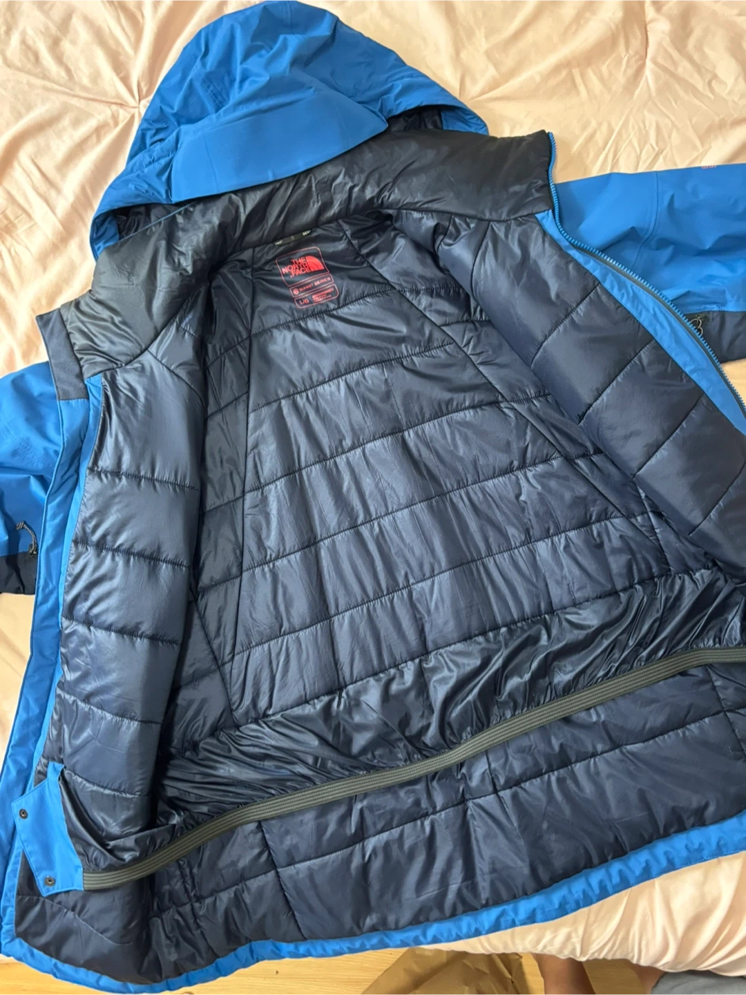 A blue and navy ski jacket from The North Face, part of their Summit Series. It's a men's L size, in great (close to new) condition.