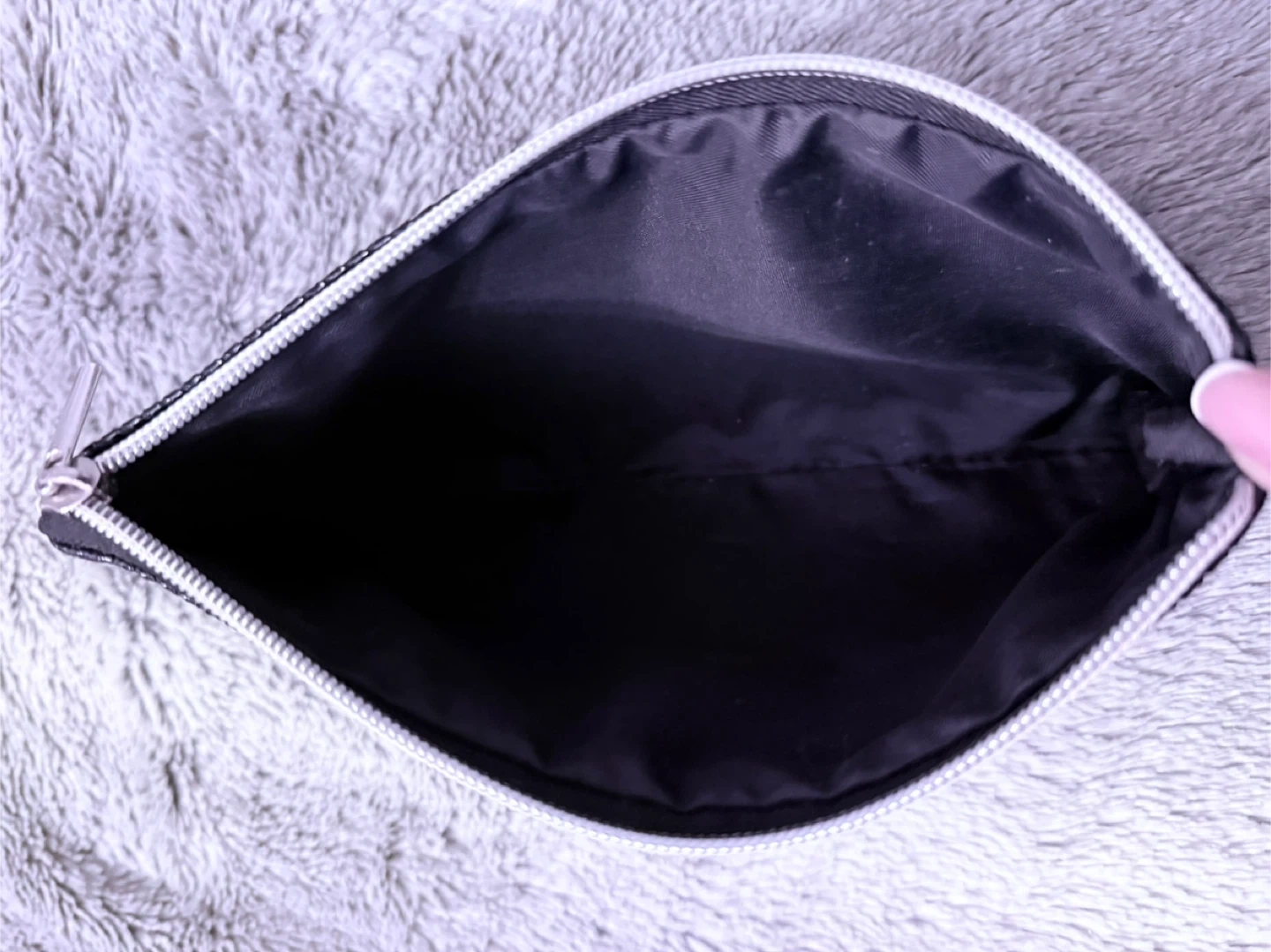 This black clutch purse features stud exterior design and a convenient wrist strap. It's perfect for carrying essentials when you're on the go. The interior is lined and includes a zippered closure.