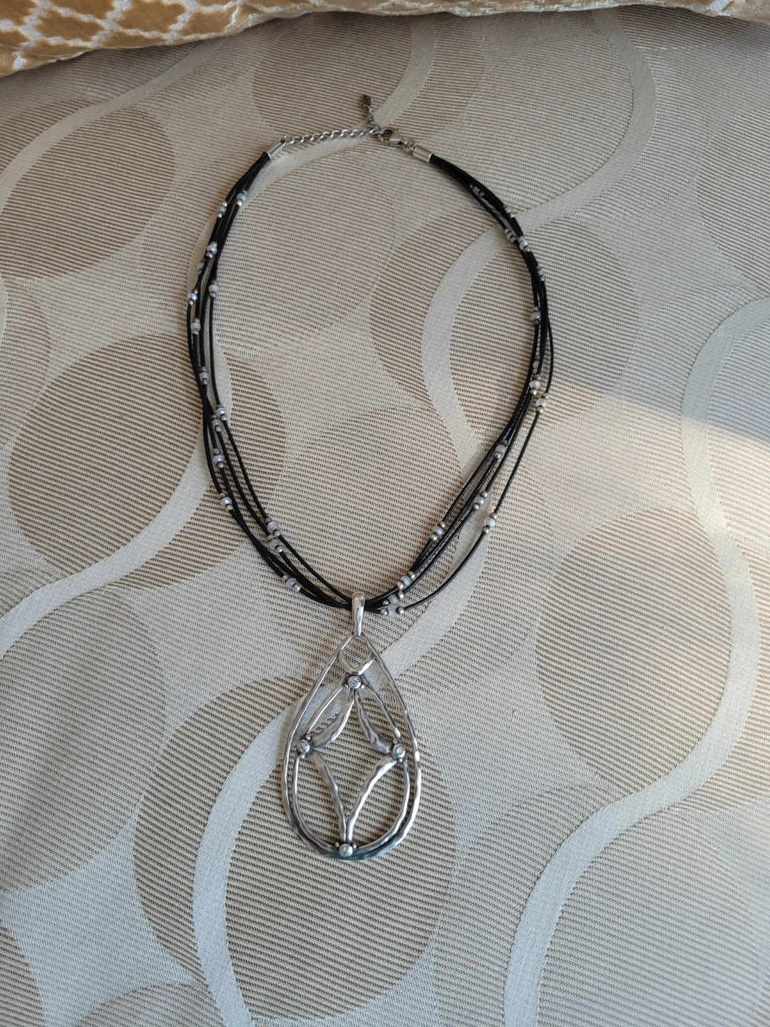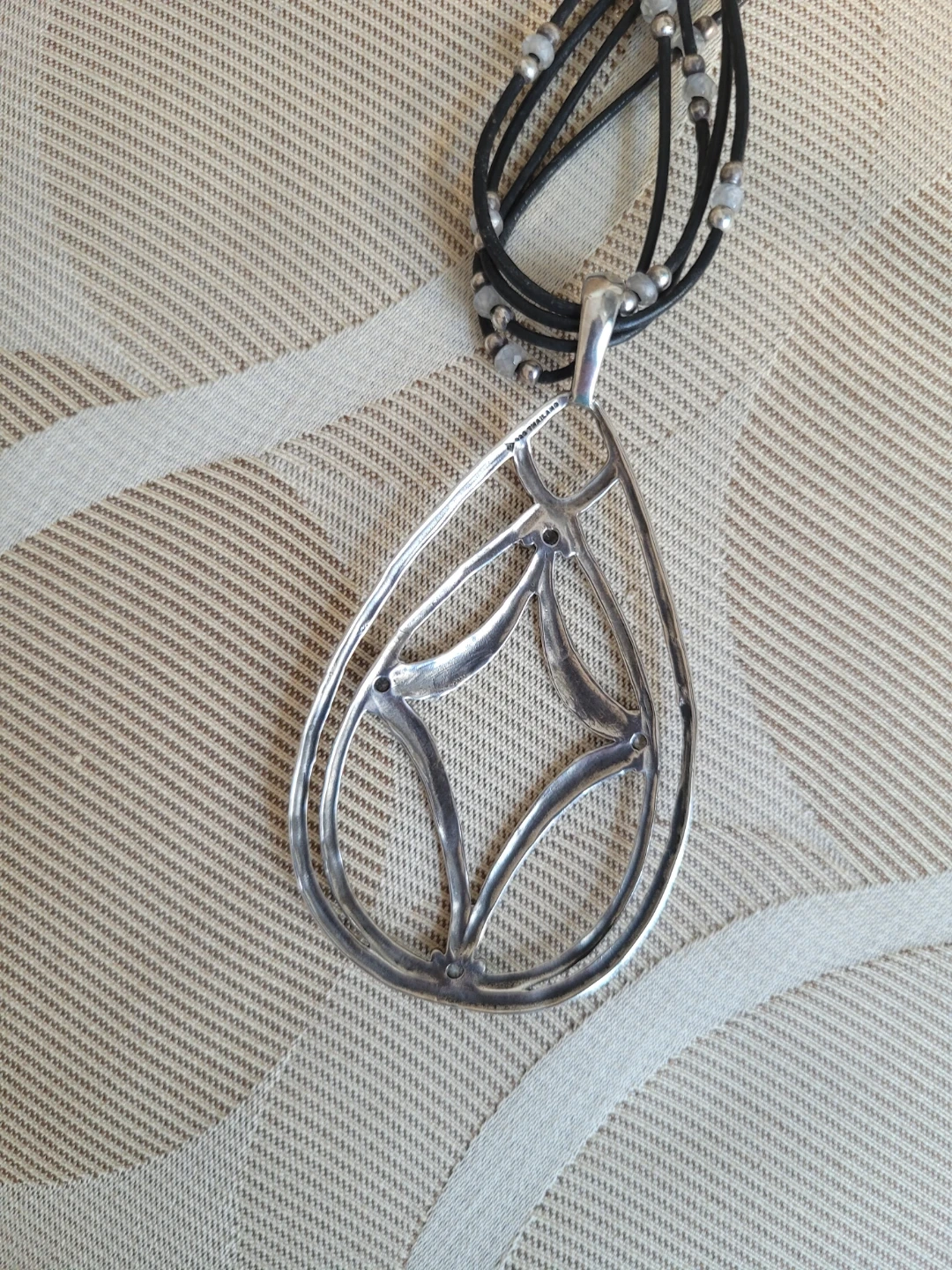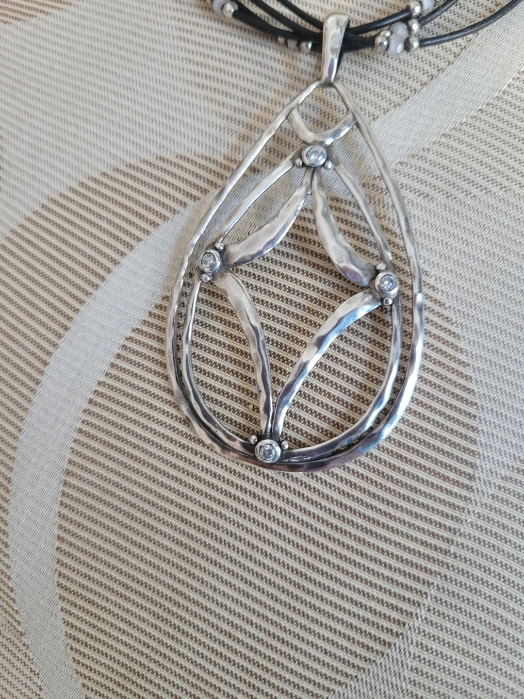 Featuring 4 strand black leather cord with Sterling Silver & CZ It has a 2' chain extender for adjustable length & Trademark Arrowhead This necklace is a nice accessory for everyday wear.