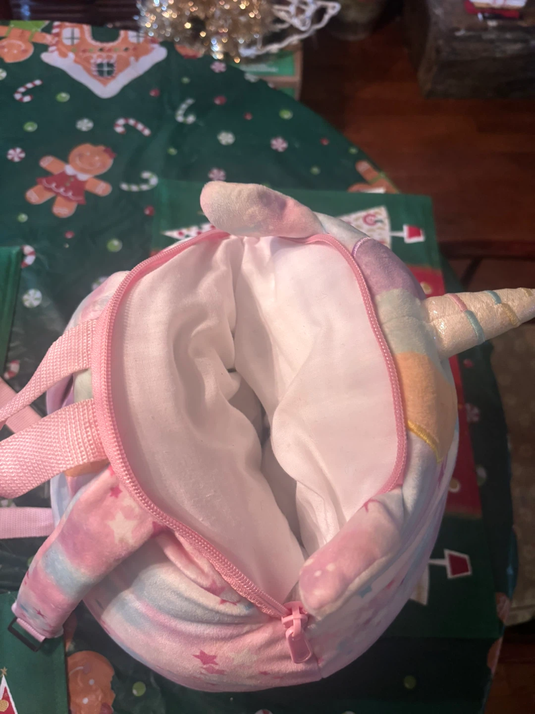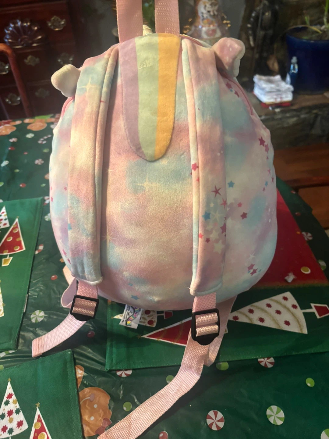 This is a super cute Squishmallows unicorn backpack! It's in great condition and ready for a new owner. Perfect for carrying your essentials in style!